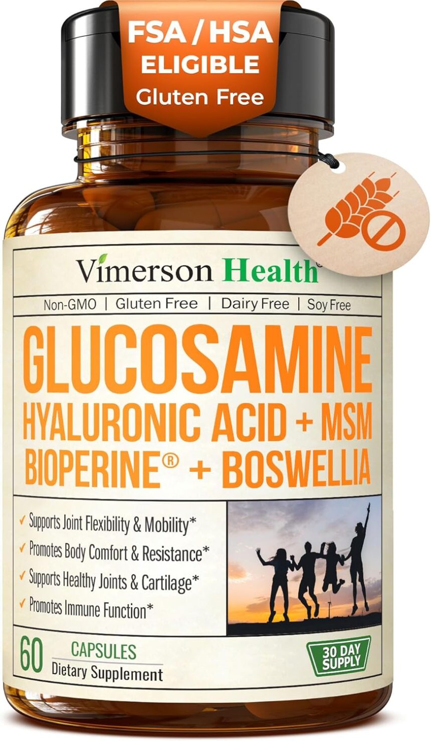 Enjoy an active lifestyle with Glucosamine Hyaluronic Acid Supplements – Vimerson Health’s all-in-one Joint Support Supplement formulated to help Lubricate your Joints, balance stiffness, and improve your Overall Joint & Cartilage Health with just 2 convenient capsules a day.*