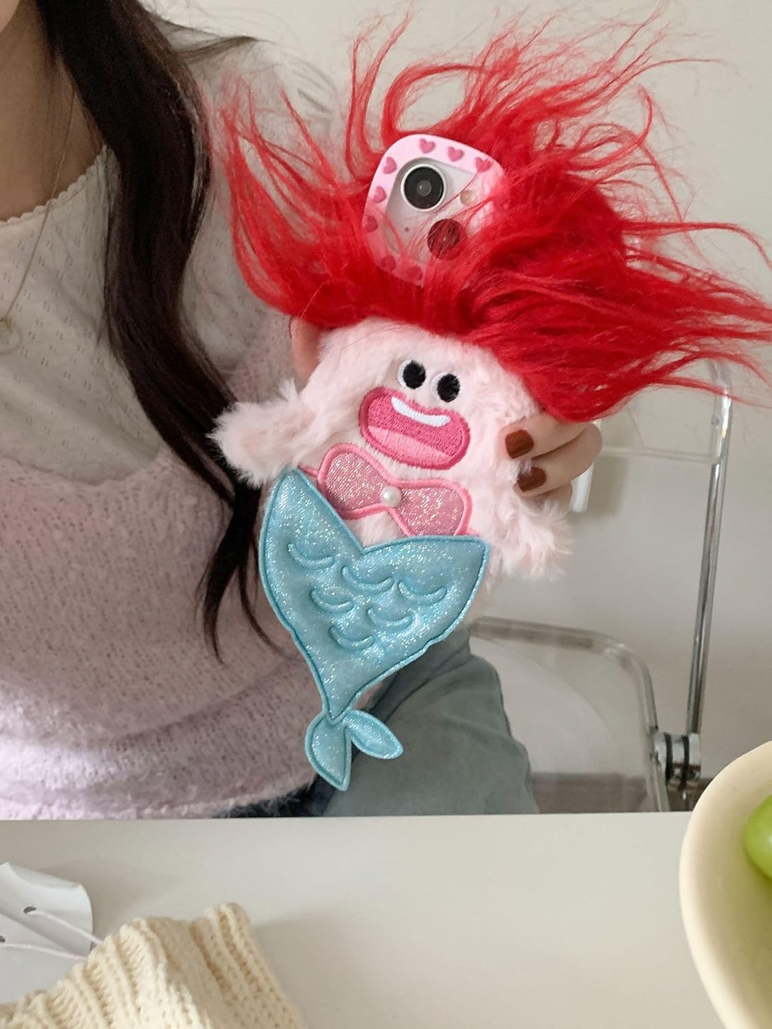 LMA Funny Mermaid Phone Case Compatible with iPhone 15 Ugly Weird Plush Phone Case for Women Girls Cute Cases Compatible with iPhone 15(Mermaid)
