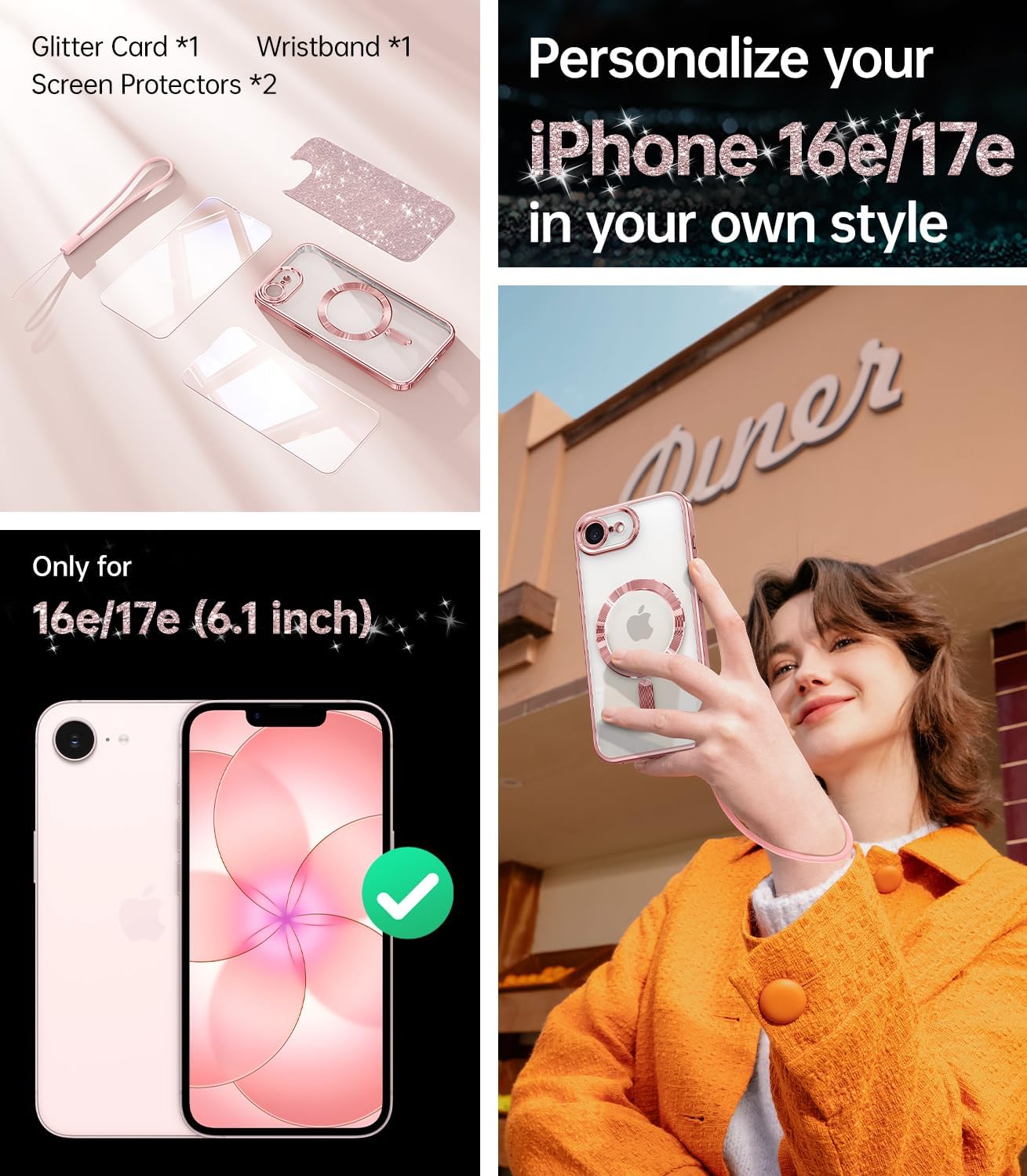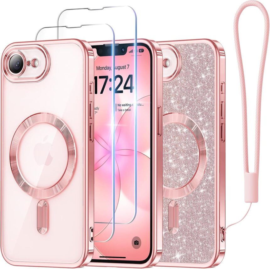 EXPRESS YOURSELF WITH PERSONALIZED DECORATION: Only designed for iPhone 17E/16E (6.1″). Comes with Wrist Strap & Glitter Card to decorate your Phone as you Please, making it easier to carry your 17e/16e. The electroplating process gives this phone case a shiny metallic luster, just like your brilliant life that will never fade. Ideal for women and girls to showcase their distinctive style