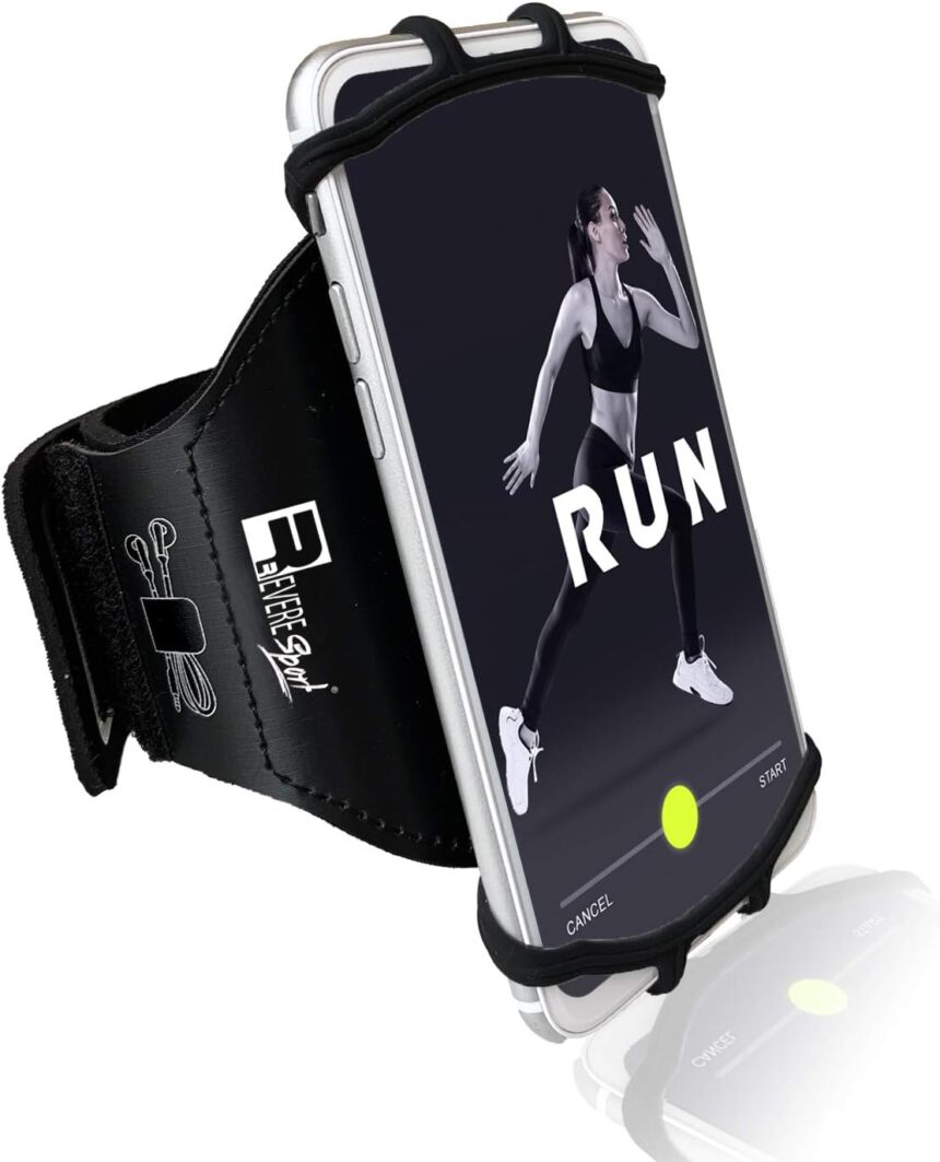 RevereSport Universal iPhone Running Armband (17/16/15/14/13/12/11/10/X/XR/SE/Air/Plus/Max/Pro). Phone Holder Case