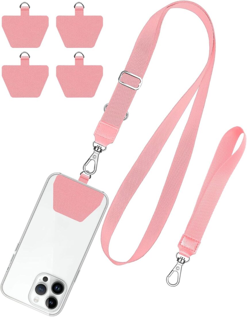 SHANSHUI Adjuatble Long Phone Lanyard And Wrsit Strap With 4 Tether Pads Compatible With Most Smartphones