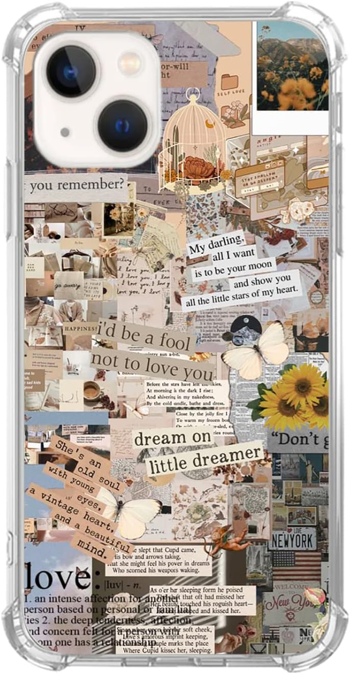 Vintage Collage Aesthetic Case Compatible with iPhone 14, Newspaper Quotes Case for Girl Women Men, Unique Soft TPU Bumper Case Cover