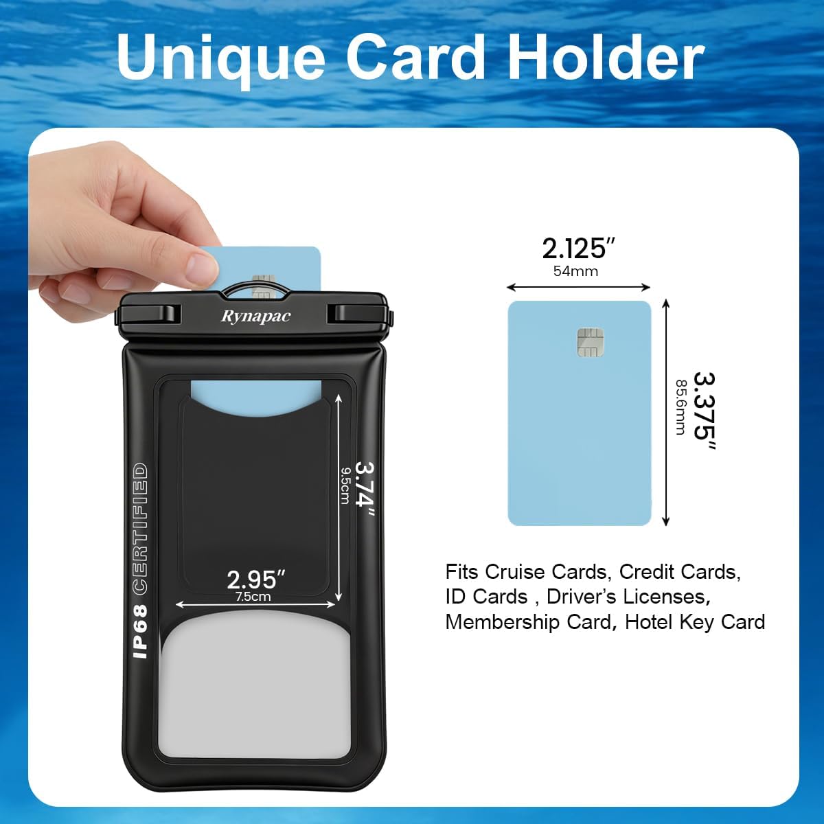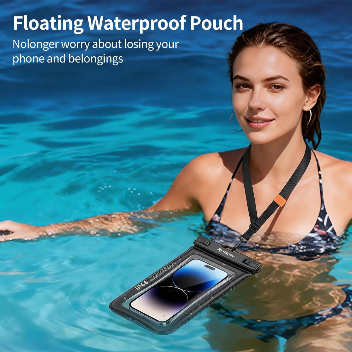 【IP68 & Double Seal】 – Rynapac waterproof phone pouch features IP68 certified protection with a reinforced double-lock seal, ensuring complete waterproof, dustproof, and sandproof security, so you can explore with absolute confidence. Ideal for cruise ship essentials, beach accessories, and kayak accessories, it keeps your phone safe during all water activities.