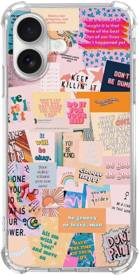 Aesthetic Inspirational Positive Quotes Phone Case Compatible with iPhone 17, Hippie Indie Collage Phone Cover for iPhone 17