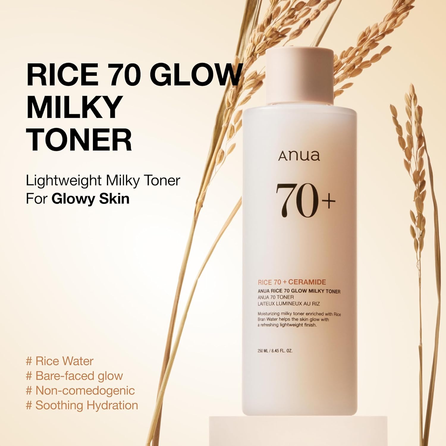 [Radiance-Boosting & Sooting Hydration] 70% Rice Water + Niacinamide for dull skin; Panthenol, Glycerin & Allantoin soothe irritated skin and provide instant(temporary) moisture.