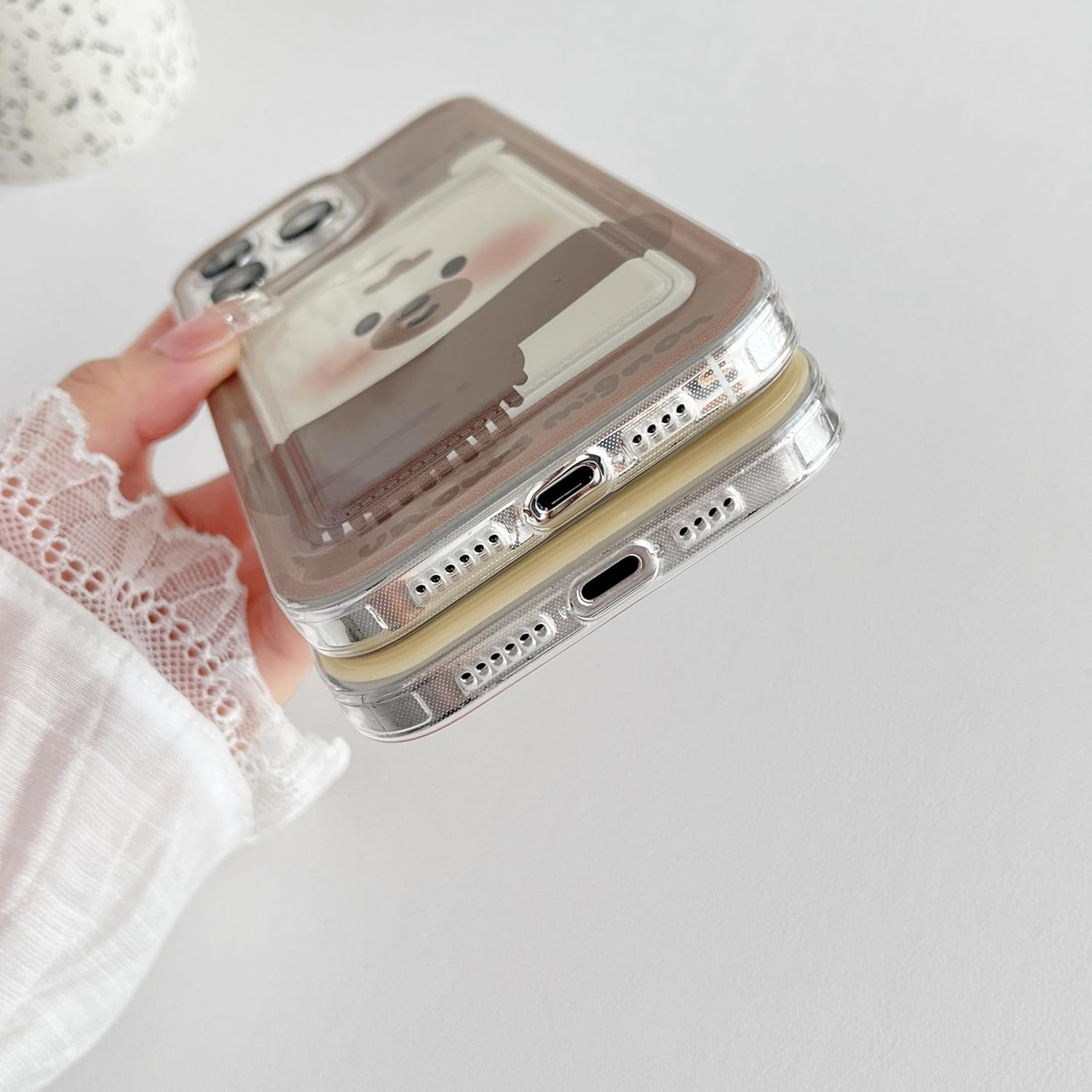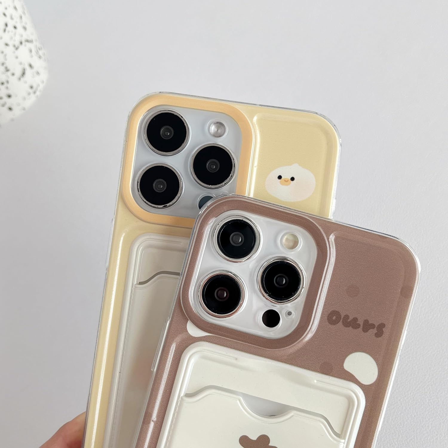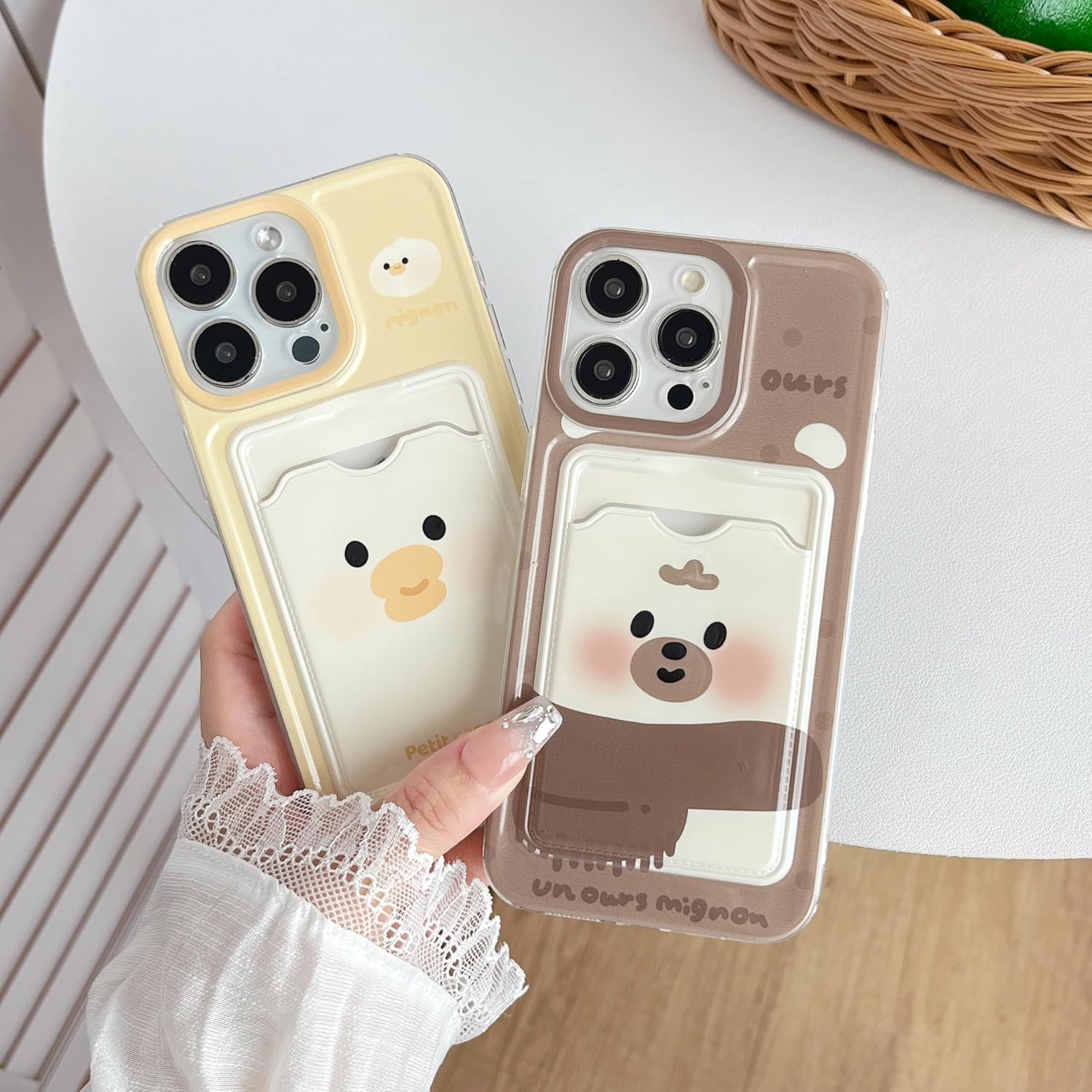 FLIRACON Cute Cartoon Bear Duck Couples Wallet Card Slot Soft Phone Case Compatible with iPhone Case (Duck,for iPhone 13)