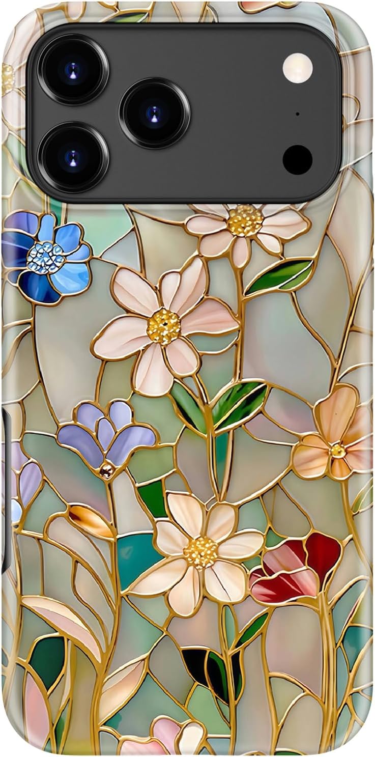 for iPhone 17 Pro Max Case Cute,Aesthetic Vintage Mosaic Stained Glass Shell,Compatible with Magsafe,Trendy Unique Cool Retro Western Protective Slim Silicone Phone Cover for Women Girls
