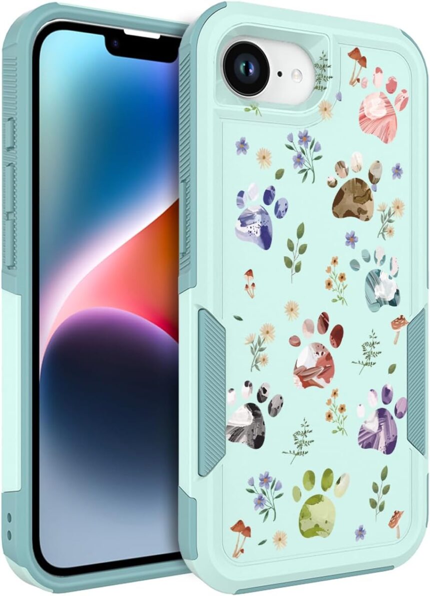 for iPhone 17e Case & iPhone 16e Case: Cute Flowers Floral Design for Girls Women Military Grade Drop Protection TPU Bumper Shockproof Silicone Phone Cover (Dog Paw/Garden) | 2025, for Girls Women, Slim, Soft, TPU Bumper