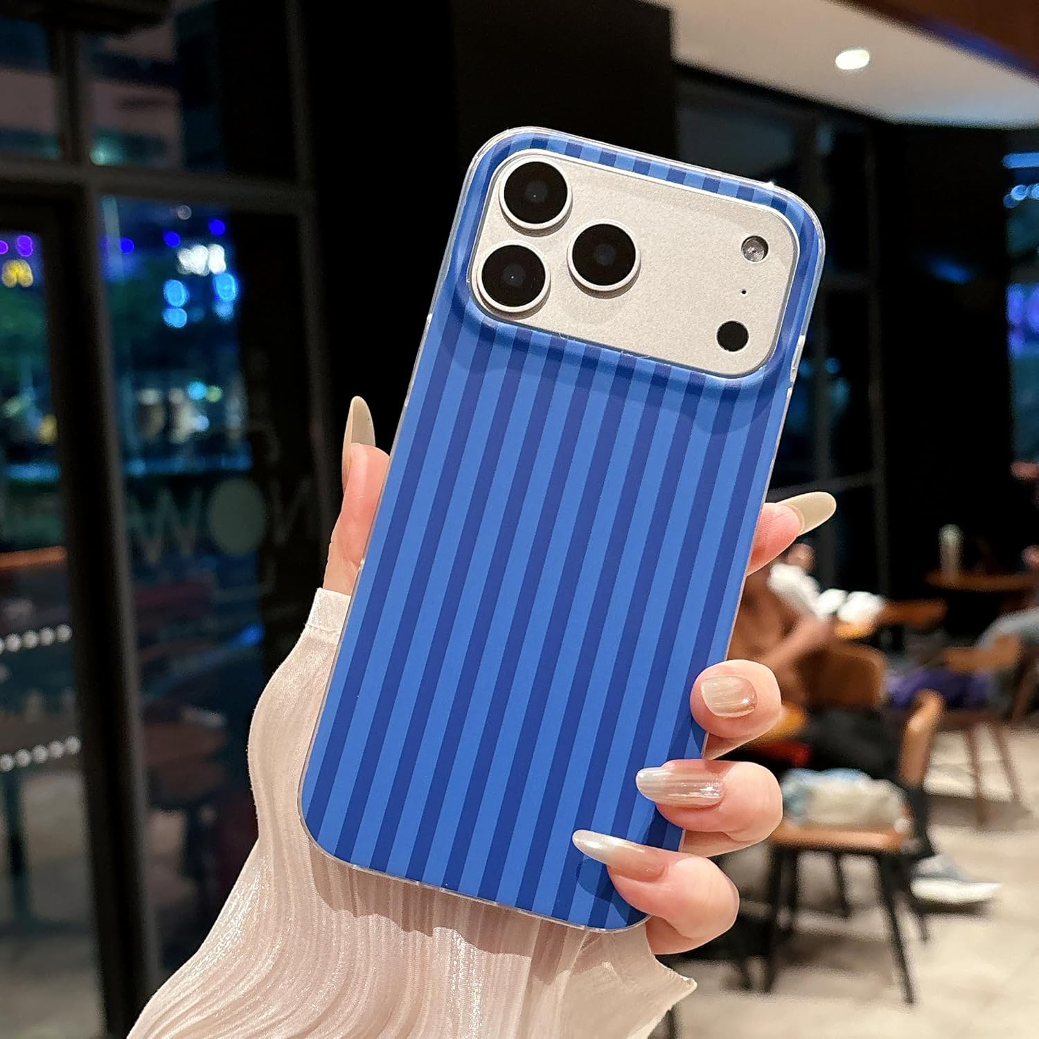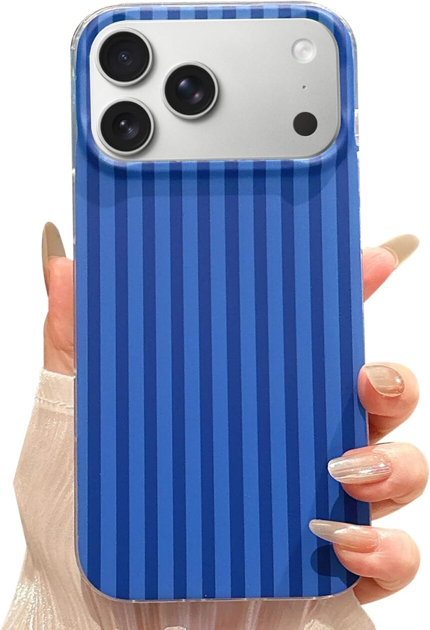 Jmltech for iPhone 17 Pro Max Case Striped Phone Cases Cute Women Girly Trendy Shockproof Slim Soft TPU and Hard PC Protective Cover Navy Blue