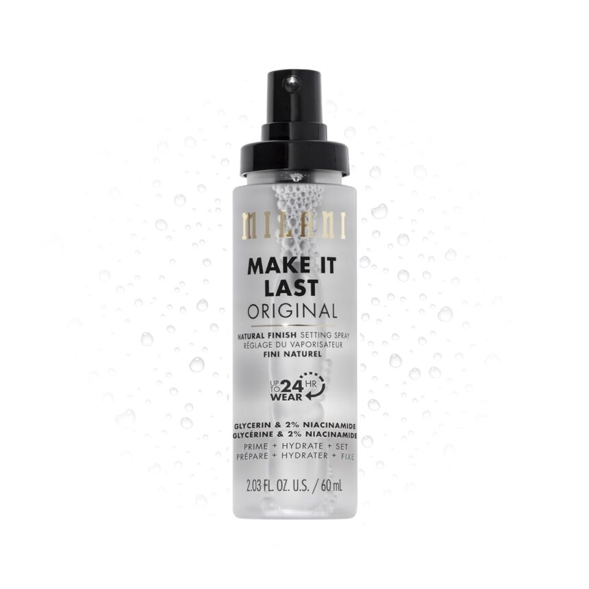 PRIME + CORRECT + SET: Make It Last Prime + Correct + Set Setting Spray preps your face, reduces the appearance of imperfections and then locks in for the long haul. You can enjoy up to 24 hours without a crease or smudge in sight. Spray before or after makeup application, or wear it alone for a captivating natural finish.