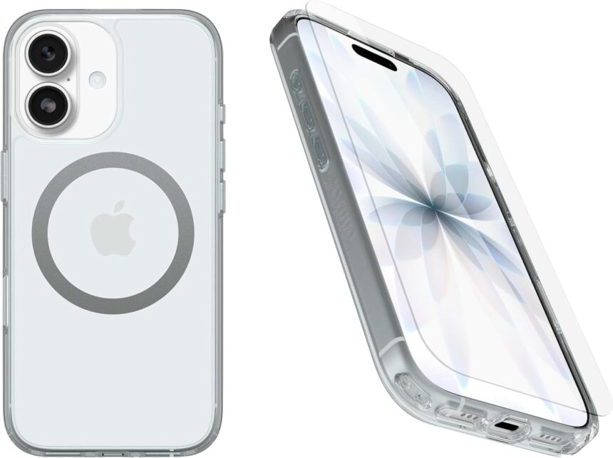 OtterBox iPhone 17 (Only) Bundle: Symmetry Clear Series+ Case & Screen Protector – Clear – Snaps to MagSafe, Ultra-Sleek, Raised Edges Protect Camera & Screen, Non-Retail Packaging