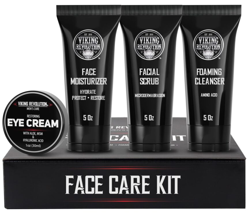 Viking Revolution Men’s Facial Skin Care Kit – Includes Rejuvenating Face Moisturizer, Microdermabrasion Facial Scrub, Foaming Cleanser (5oz Each) and Eye Cream (1oz)