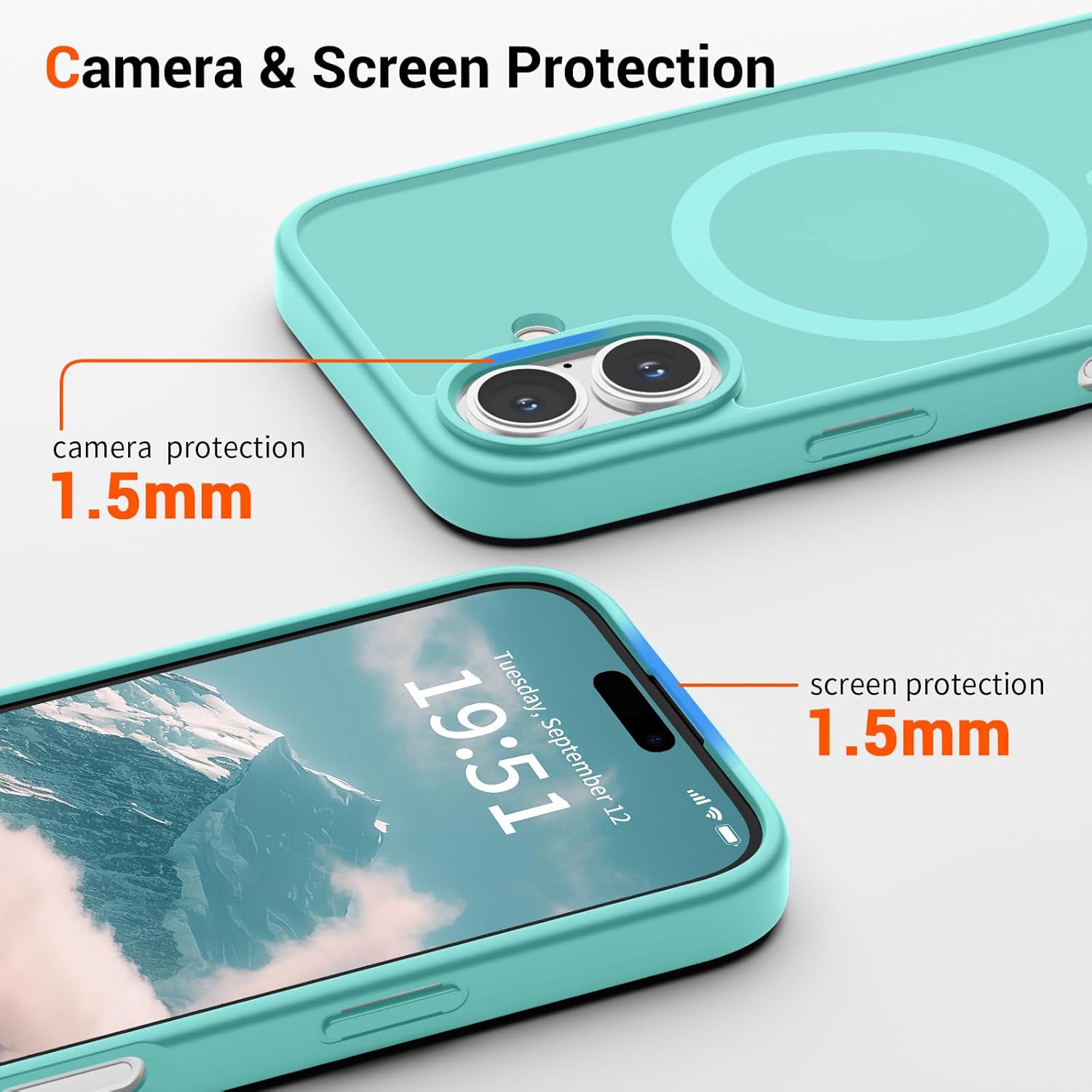 vnnink for iPhone 16 Plus Case,Magnetic Matte Military Grade Drop Protection Translucent Cell Phone Cover – Slim Rugged Durable Shockproof Bumper Cover-Blue Green