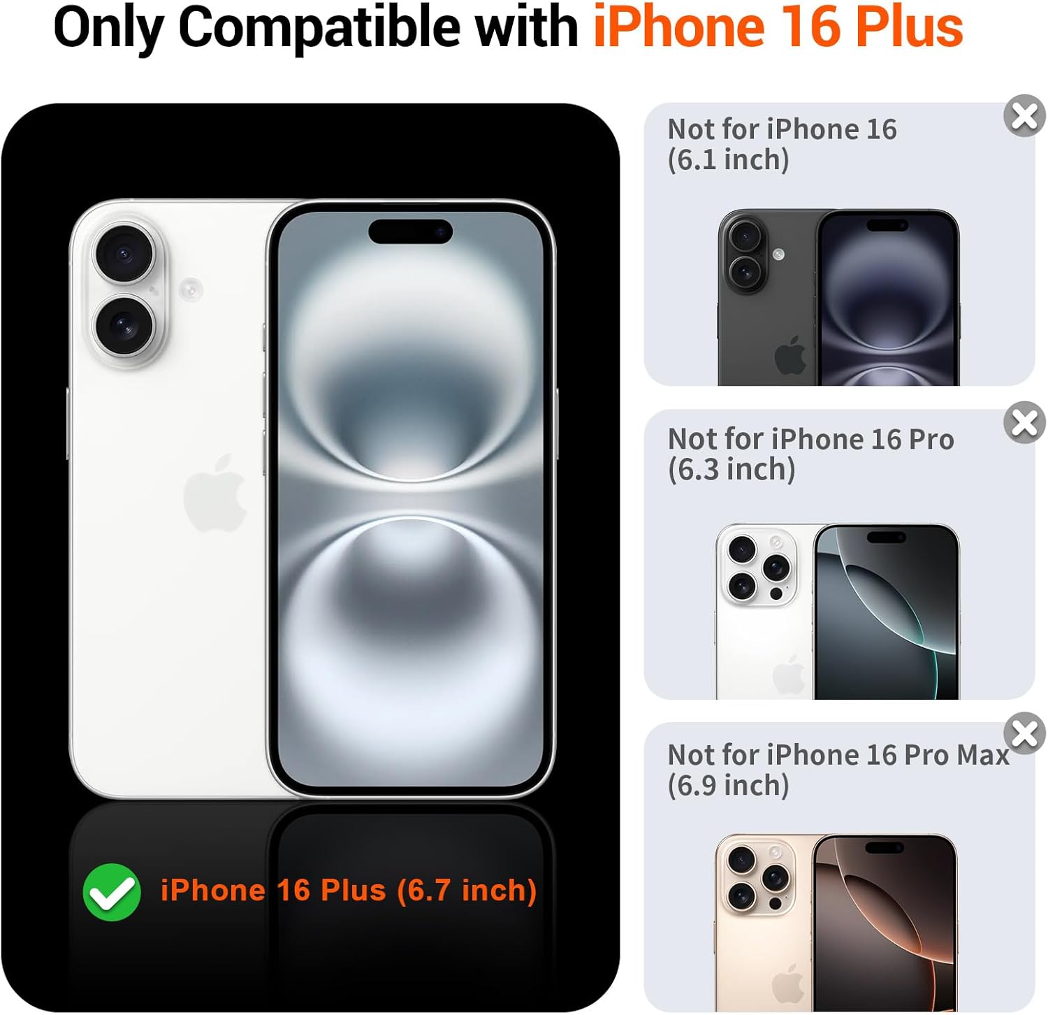 Military Grade Drop Protection: Our case for iPhone 16 Plus backplane is made with rigid polycarbonate and flexible shockproof TPU bumpers around the edge and features 4 built-in corner Airbags to absorb impact, which can prevent your Phone from accidental drops, bumps, and scratches