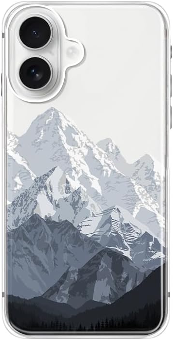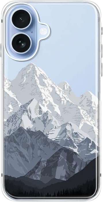 Blingy’s for iPhone 17 Case, Snow Mountain Pattern Cool Scenic Landscape Nature Design Transparent Soft TPU Protective Clear Case 6.3 inch (Mountain Peak)