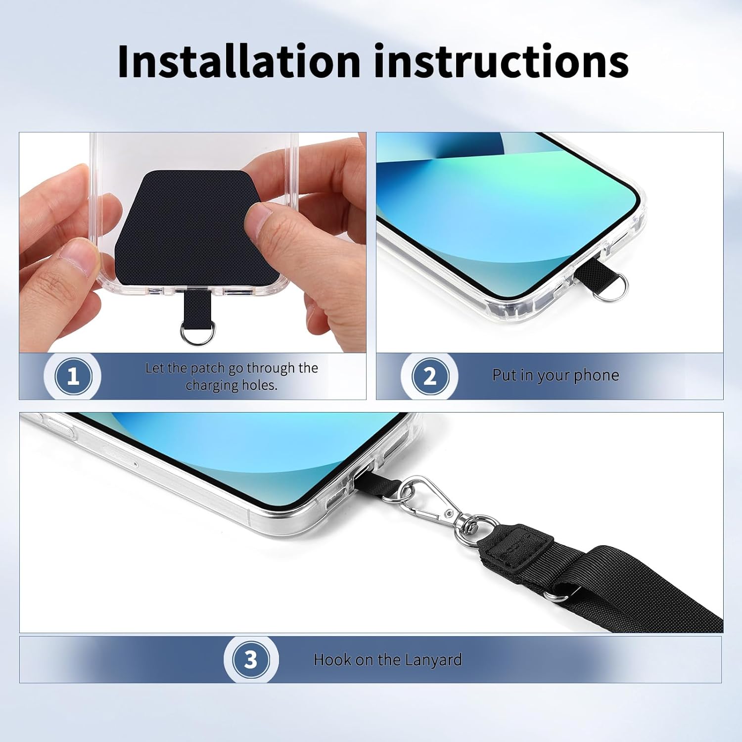 【Easy Installation】No tools are required. You just need to insert the pad through the charging hole of the fully covered phone case, then plug in your phone and connect to the lanyard. Please note that the half cover phone case is not supported.
