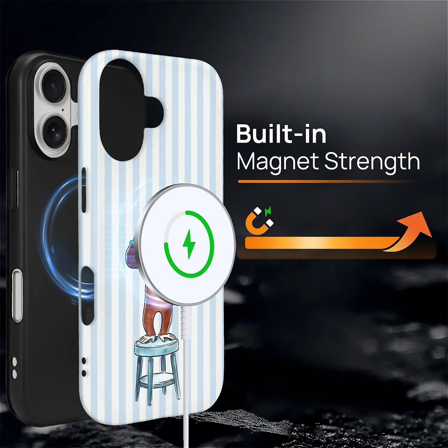 The super strong magnets can strengthen the magnetic connection and ensure auto-alignment to make wireless charging faster and safer than before. This Magnetic Case is designed for Mag-safe chargers, including Magsafing wallets and car mounts.