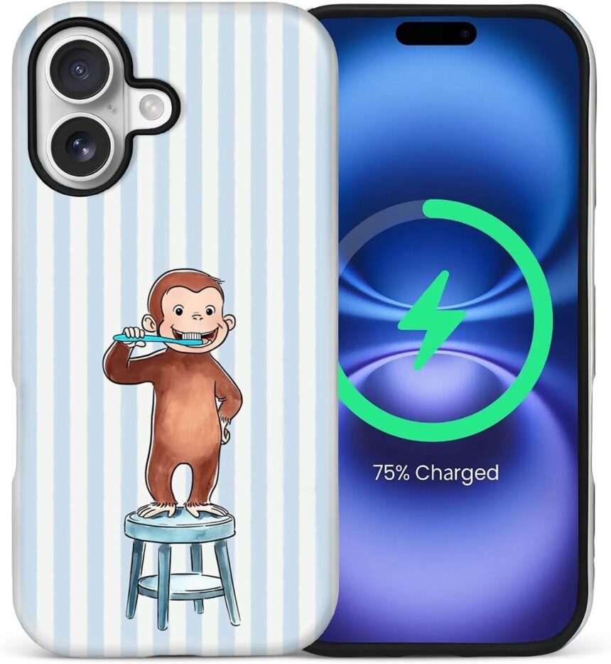 Case Compatible with iPhone 17,Compatible with MagSafe,Durable Shock Protection Phone Case for Girl Women Boy Men – Funny Monkey and Stripes