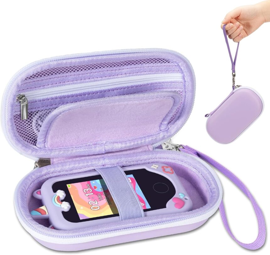 Best gift: The outer layer of the kid phone case is made of waterproof and dustproof material, which can protect kids smart phone from impacts and splashes. With its purple color and special design, this storage case is perfect for girls who own a kids smart phone toys.