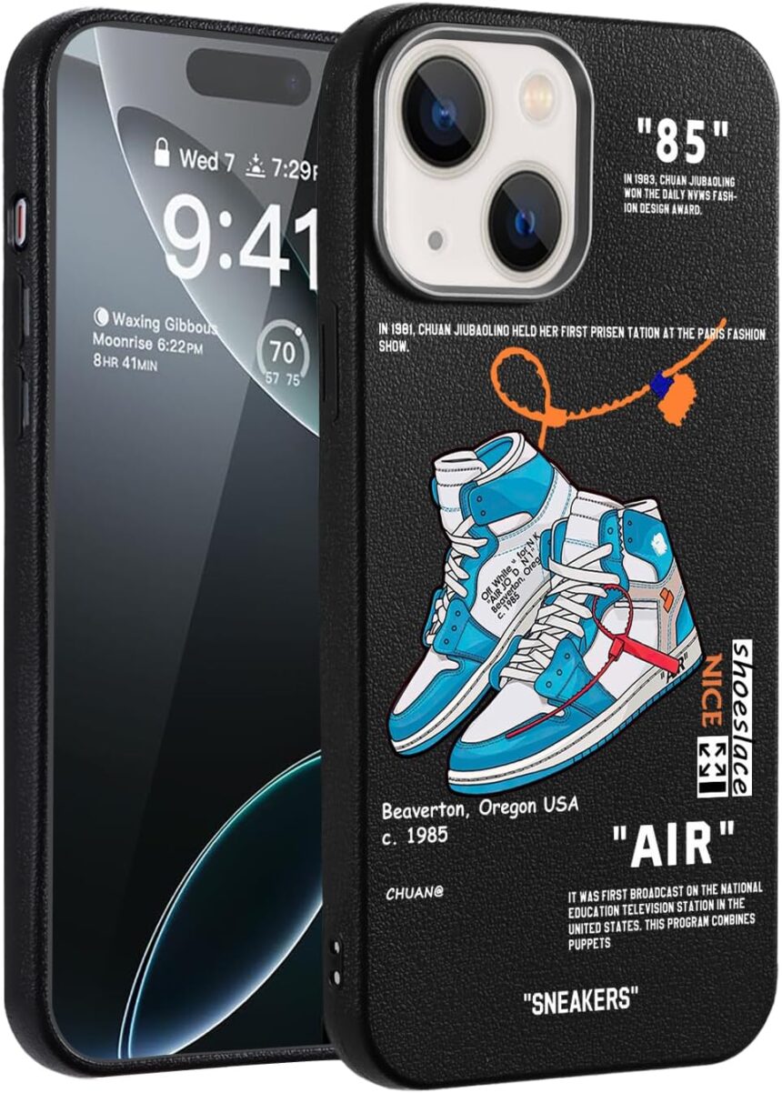 Cool Phone Case for iPhone 15 Case for Boys Men Basketball Shoes Sneaker Print Design Cases Compatible with iPhone 15 Black