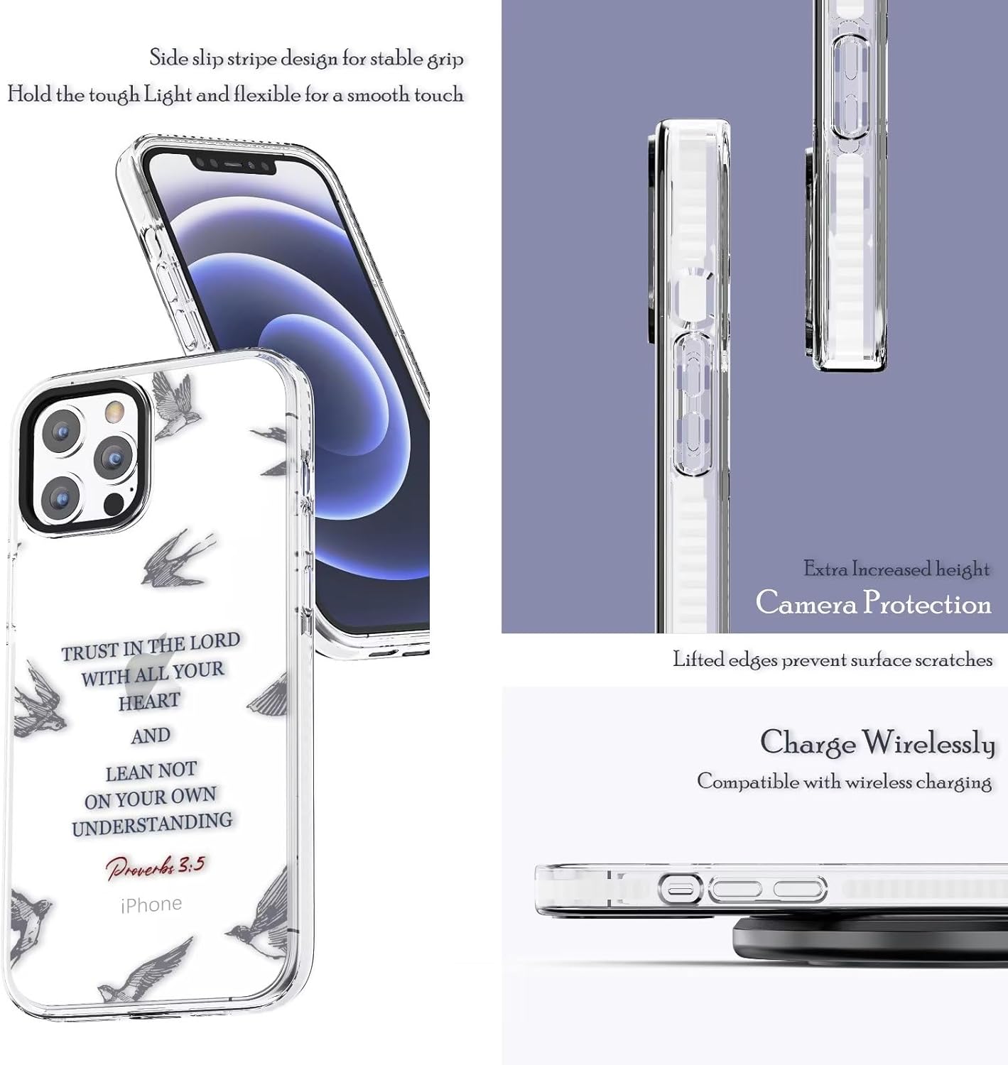 Cute Case Compatible for iPhone 15 Pro Max Bible Verses for Girls Women,Christian Inspirational Proverbs 3:5 Quotes Swallow Soft Protective Case Compatible with iPhone 15 Pro Max