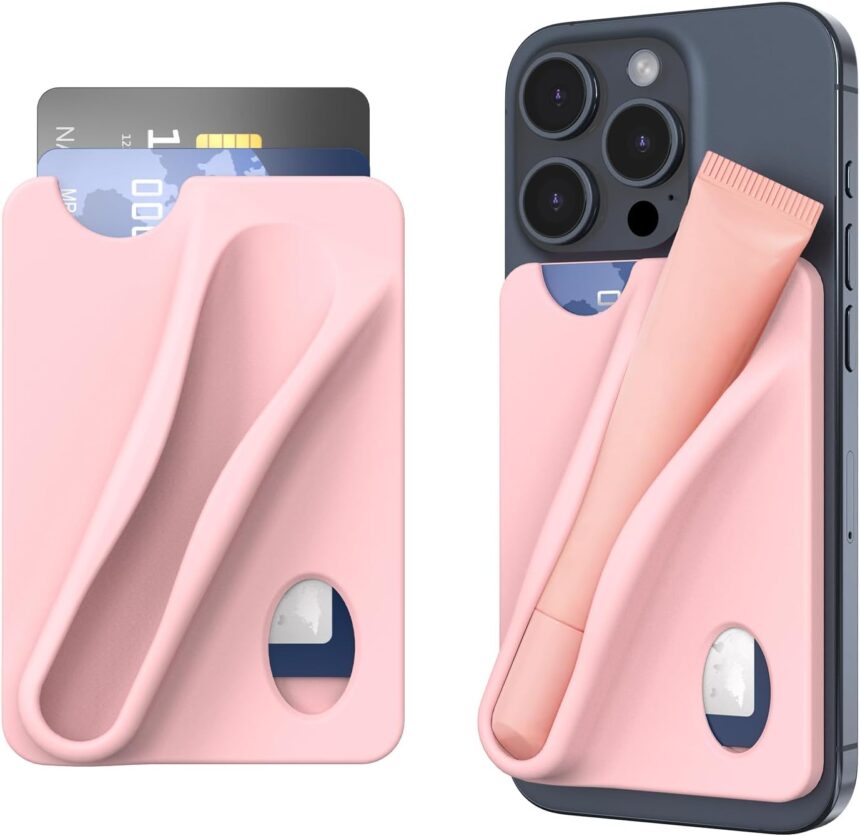 DOB SECHS Silicone Lip Holder with Card Holder Compatible with Lipstick Lip Glaze Phone Case Back Stick On Holder for iPhone and Android Smartphones (Pink, Small)