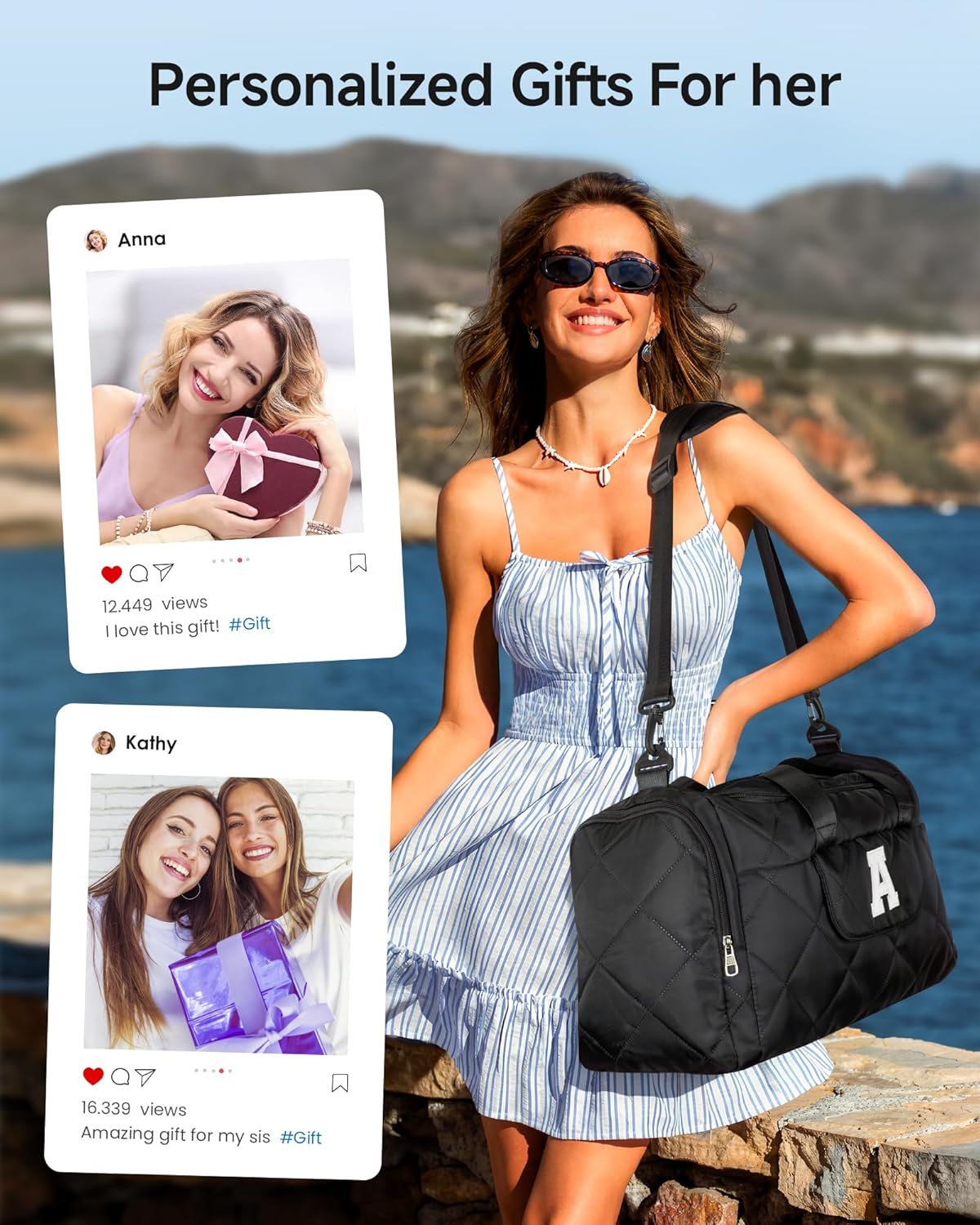 [Personalized Gift for Her] Make her day unforgettable with this custom initial duffle bag. Perfect for birthdays, anniversaries, or just because, this thoughtful gift combines style and sentiment. A meaningful keepsake she’ll cherish for years to come. Whether it’s for your best friend, sister, girlfriend, or daughter, this bag is the perfect way to show you care. Ideal for Christmas, Valentine’s Day, Mother’s Day, or even a surprise “just because” moment.