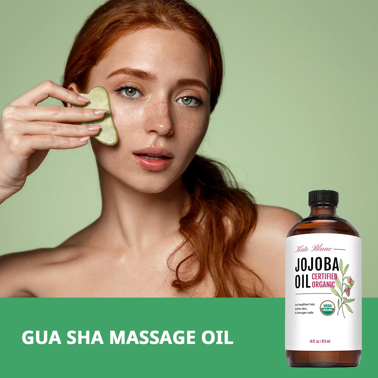 GUA SHA FOR FACE MASSAGE: Organic jojoba oil is a natural face oil for gua sha massage and provides a smooth, glide-enhancing surface while nourishing the skin with its lightweight, non-greasy formula; often used a face oil for gua sha and as a facial oil for dermaplaning.
