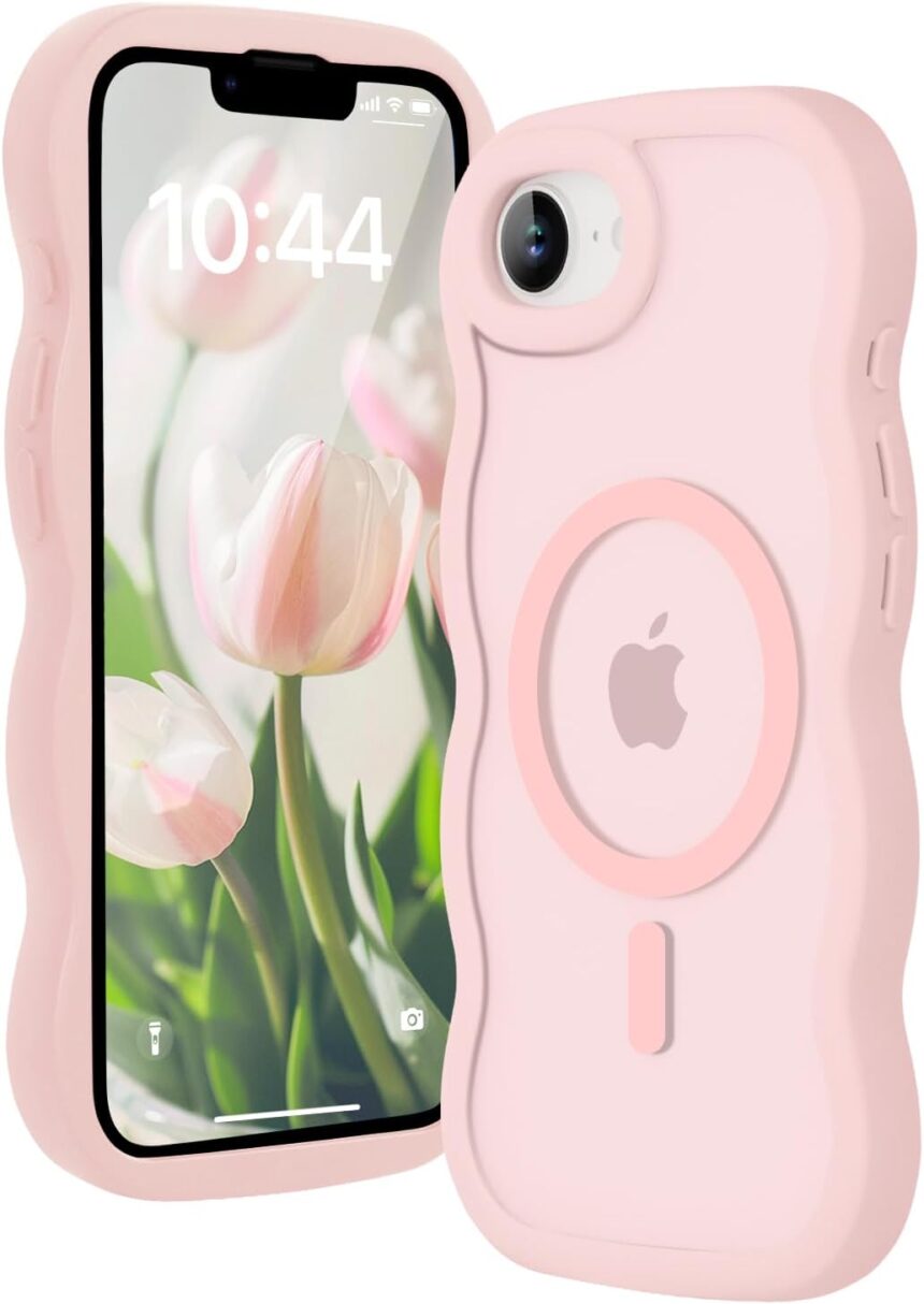 Magnetic for iPhone 16e for iPhone 17e Case, Compatible with Magsafe Wavy Frame Cute Design Translucent Matte Hard Back Silicone Phone Case for iPhone 16 e for iPhone 17 e Women Girls, Pink