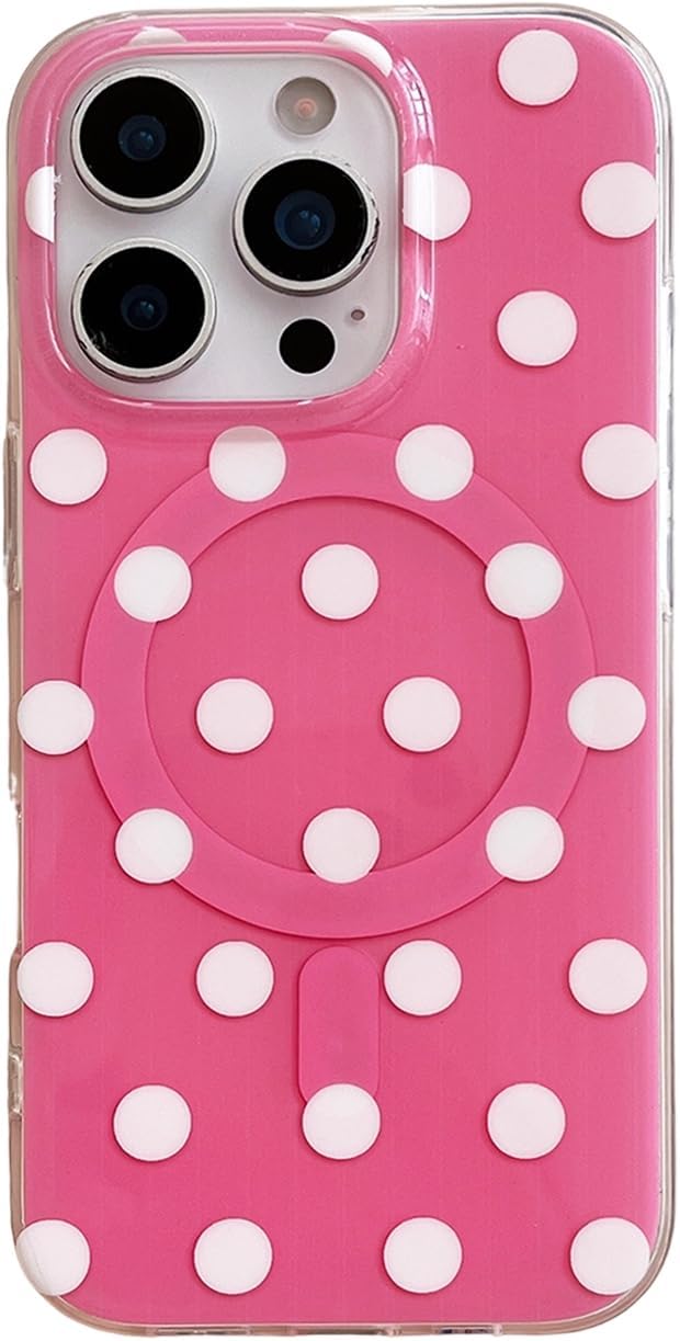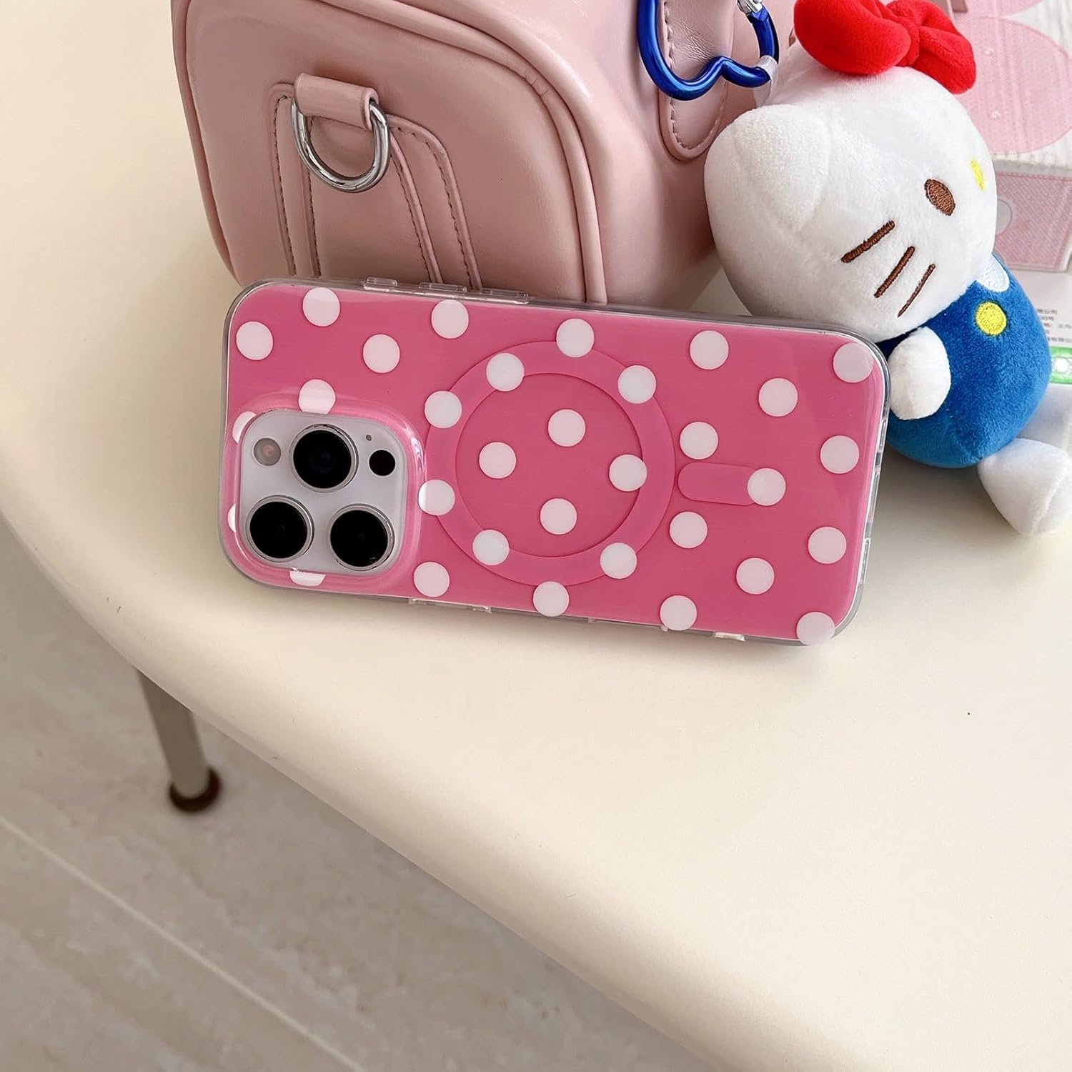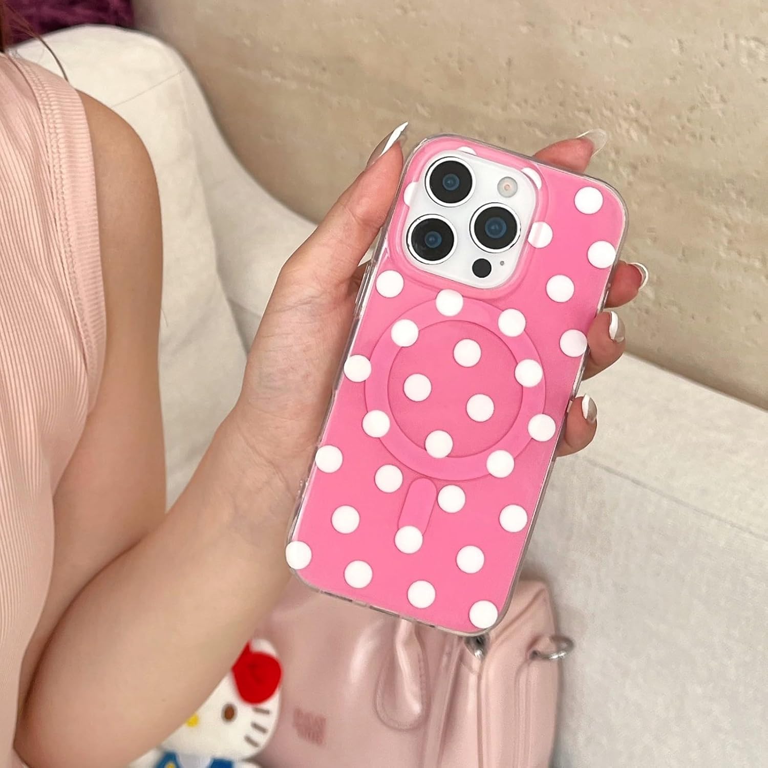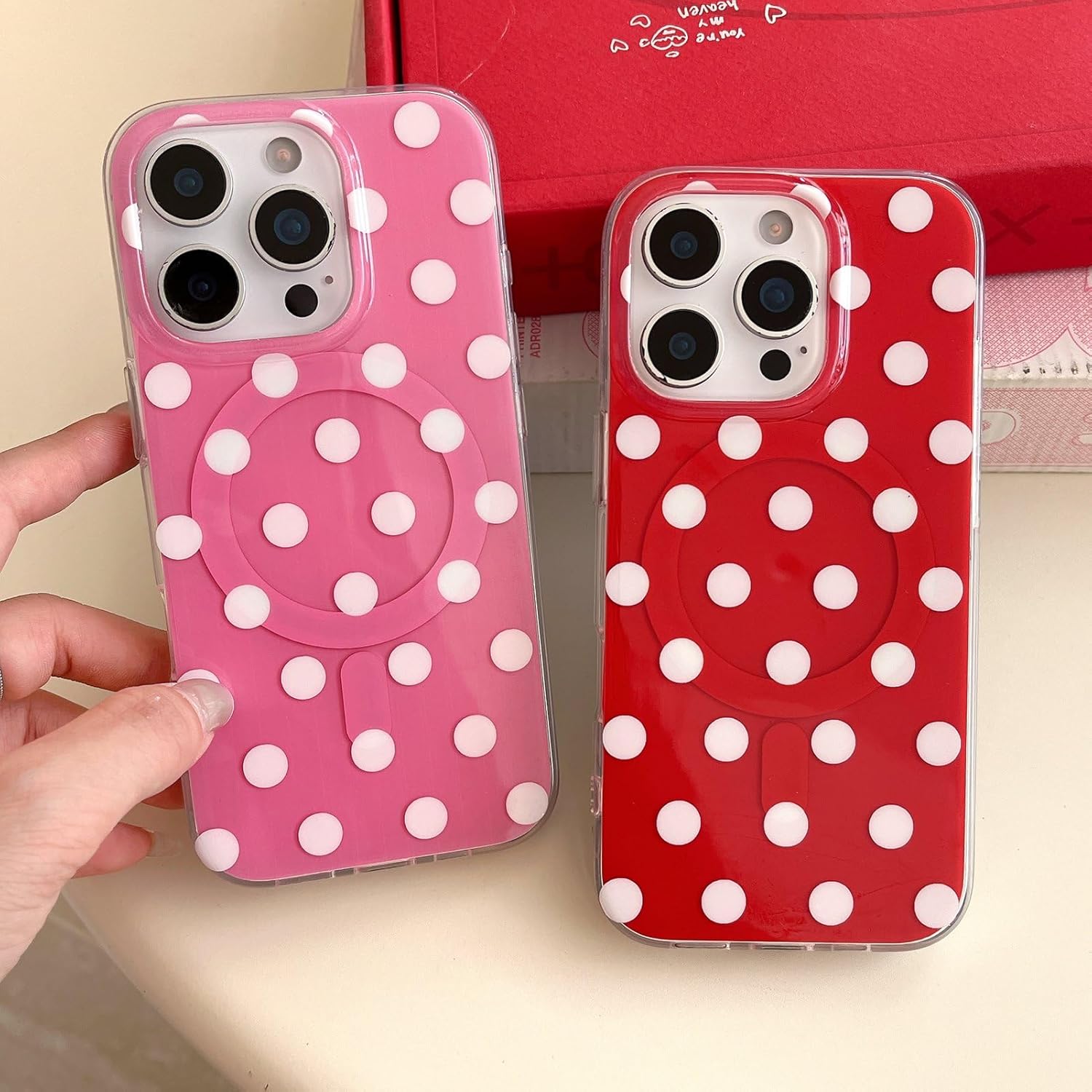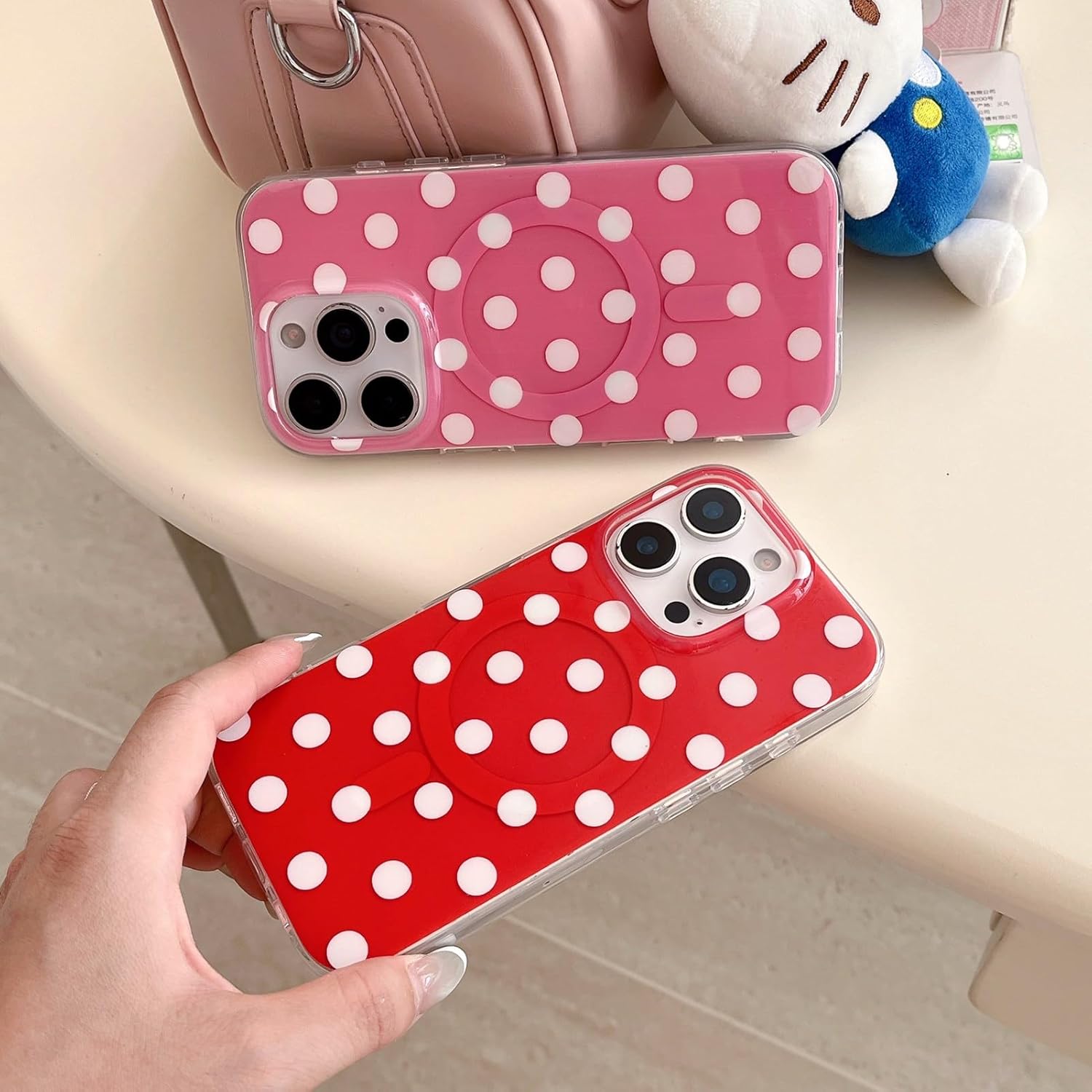 Magnetic Polka Dot Pink Red Phone Case For iPhone 16 15 14 13