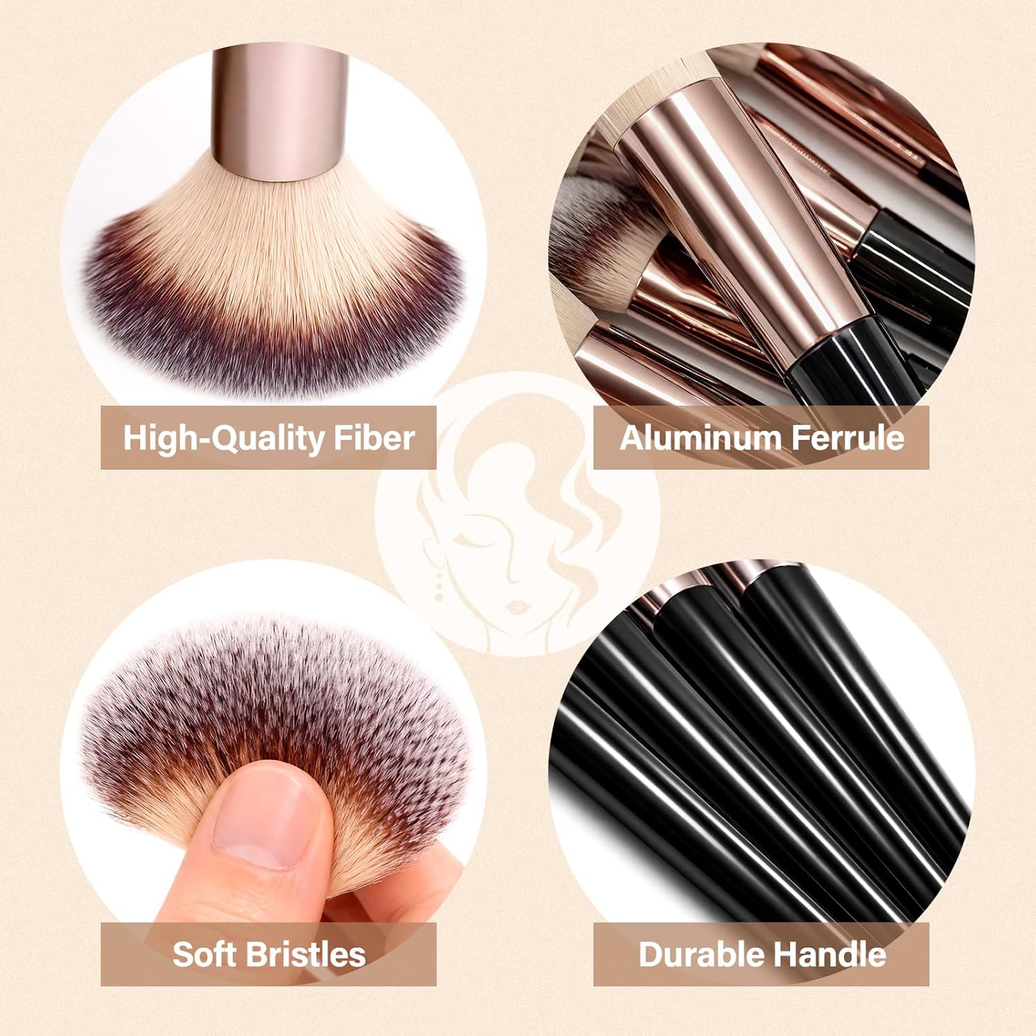 The brushes are made with soft, high-quality synthetic fibers (nylon), which are gentle on sensitive skin and offer excellent powder retention for a flawless application. They are durable and long-lasting.