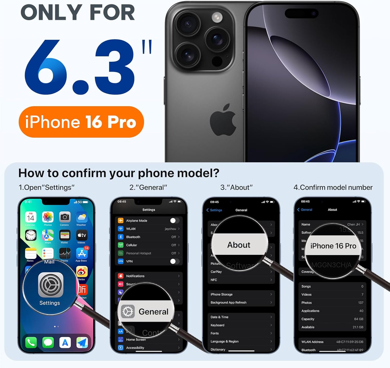【Compatible with MagSafe】Liquid Silicone Case only compatible with iPhone 16 Pro (6.3″). Can be adapted to wireless charging with magnetic function