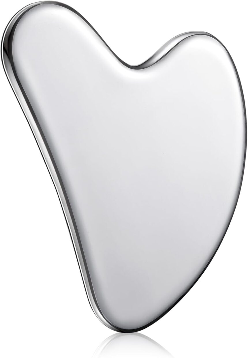 Metal Gua Sha for Face Body: this stainless steel gua sha is sturdy, durable, and breakage-resistant, stronger than stone or jade tools; As a versatile muscle scraper tool, it is designed for daily use to help improve the look of jawline and facial contours; It helps promote a smoother, more refreshed appearance as part of your daily skincare routine