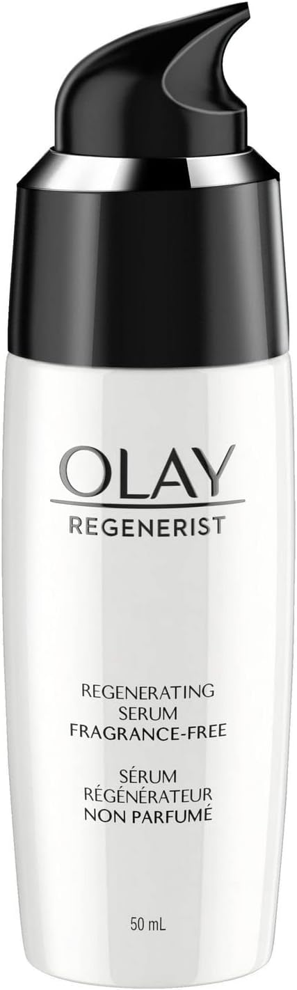 Olay Regenerist Daily Regenerating Serum 1.7 Fluid Ounce is a lightweight facial serum formulated to improve skin texture and hydration. The formula contains Niacinamide, Amino Peptides, and Glycerin to support surface renewal and moisture retention. Its fast-absorbing texture spreads evenly across the skin without leaving a heavy residue. The serum is packaged in a 1.7 fluid ounce pump bottle designed for controlled dispensing and daily application. Suitable for morning and evening routines, this serum layers easily under moisturizer and makeup.