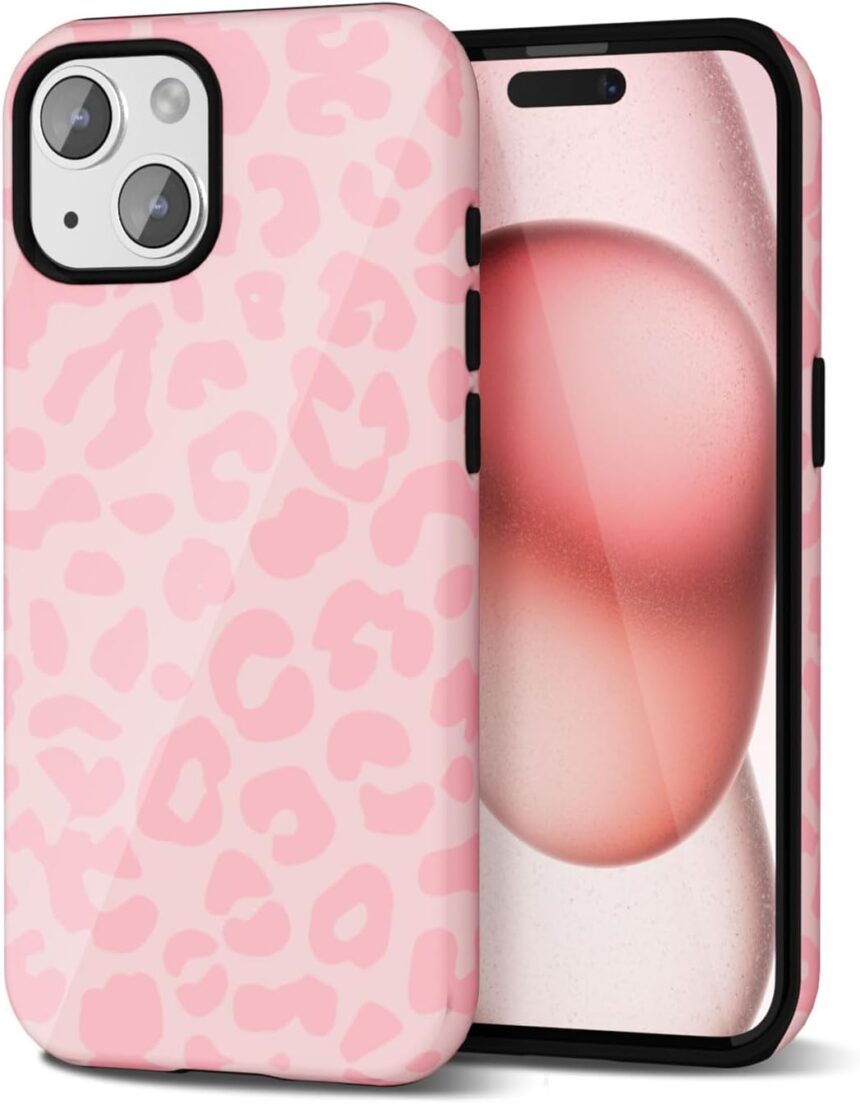Svanove Cheetah Print Phone Case for iPhone 15 Case Girly Trendy Leopard Pattern, Pink