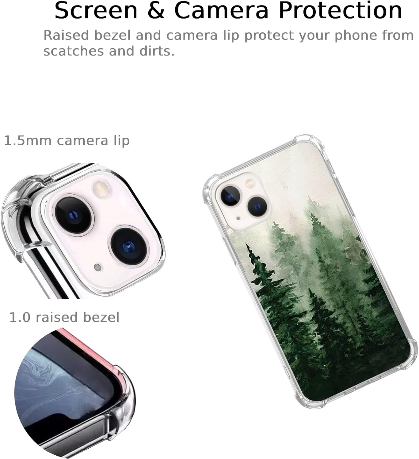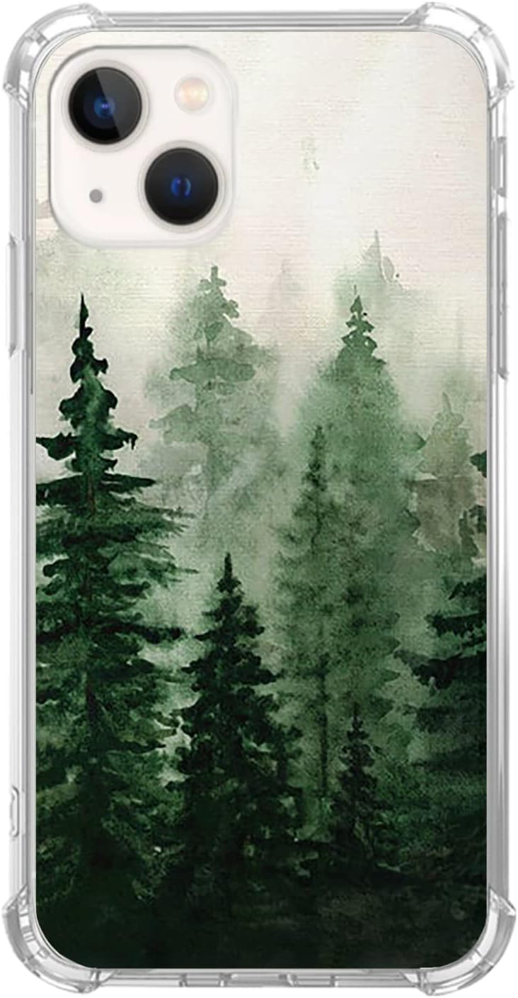 Watercolor Tree Spruce Case Compatible with iPhone 13, Green Forest Nature Art Case for iPhone 13 for Teen Men Women, Trendy Cool TPU Bumper Case Cover