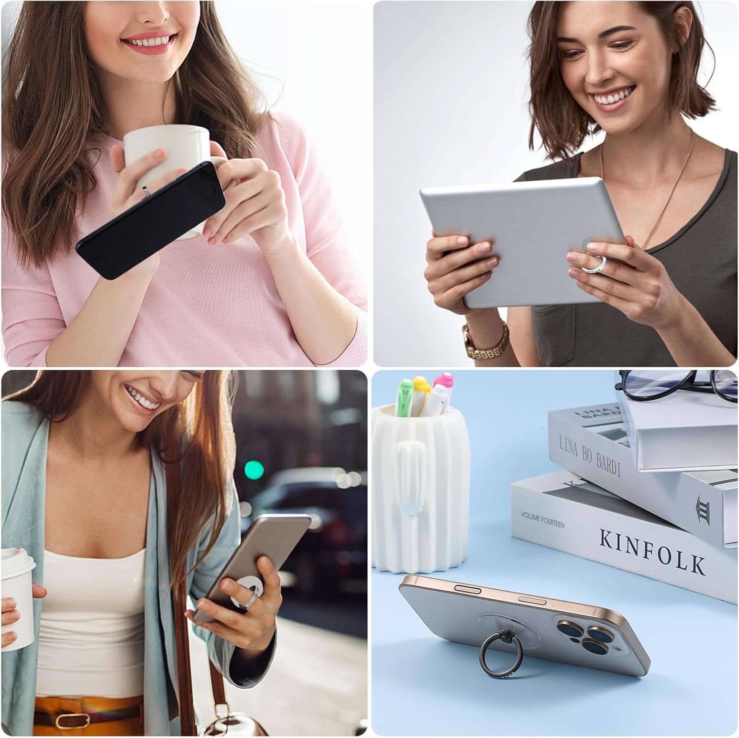 Exquisite Design: The clear cell phone ring holder keeps the phone case’s exquisite pattern visible instead of being covered by the phone ring. Does not affect the original pattern on the mobile phone case