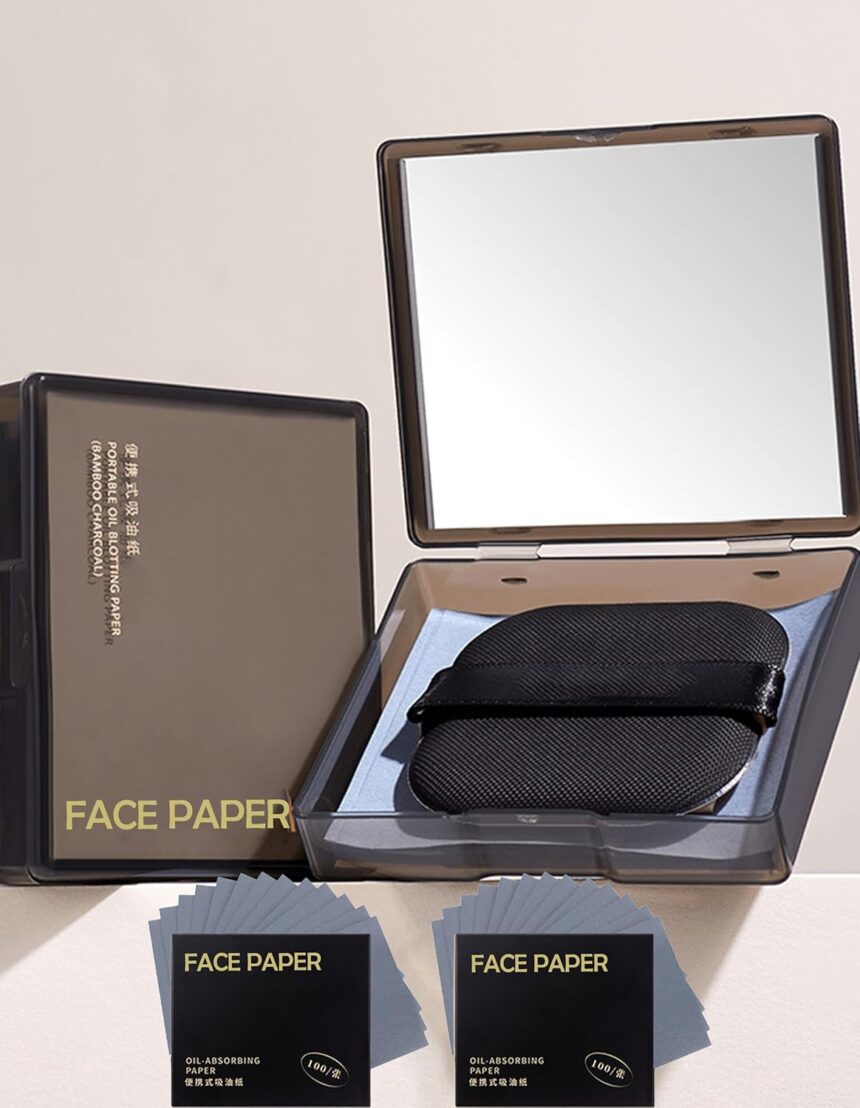 Efficient and Eco-friendly Design.Our oil blotting paper comes with adhesive paper and a puff, ensuring easy and precise use every time, without any waste. Plus, our reusable packaging helps reduce environmental impact.