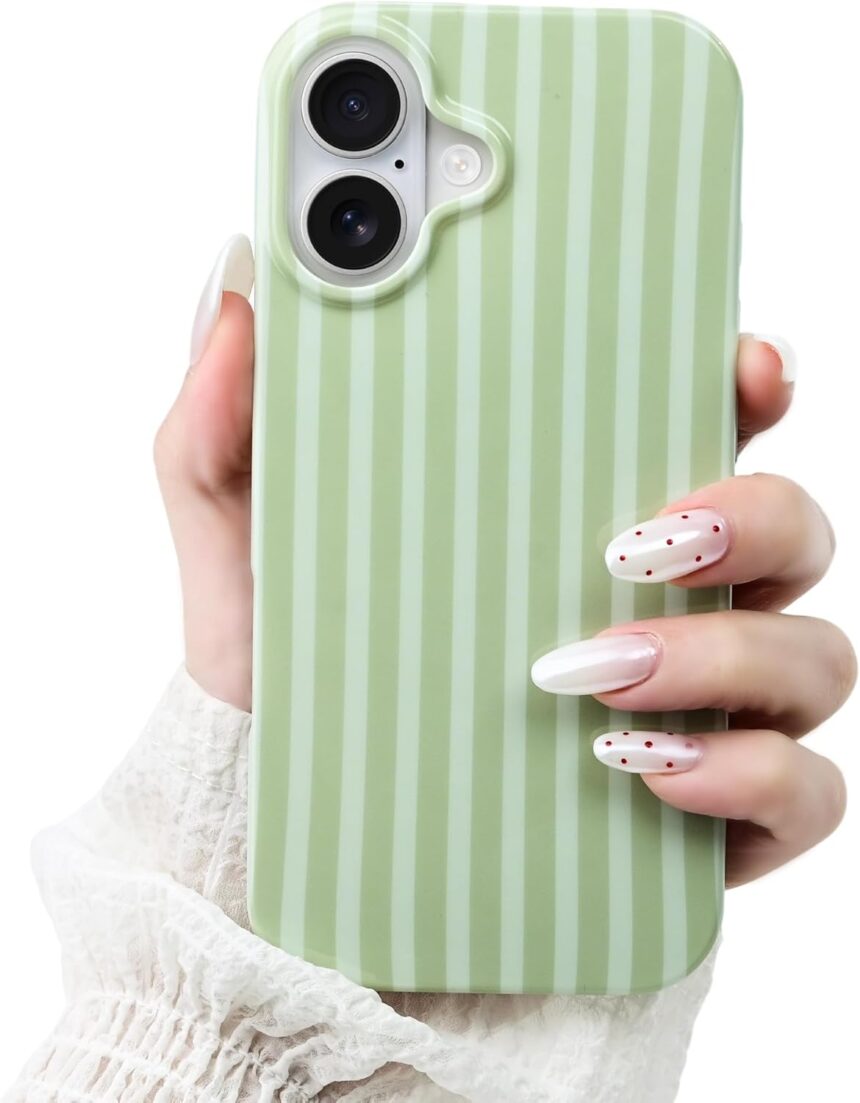 Compatible with iPhone 17 Case,Cute Aesthetic Striped Pattern Cover for Women Girls,Soft TPU Shockproof Protective Stylish Kawaii Case for iPhone 17 6.3″,Green