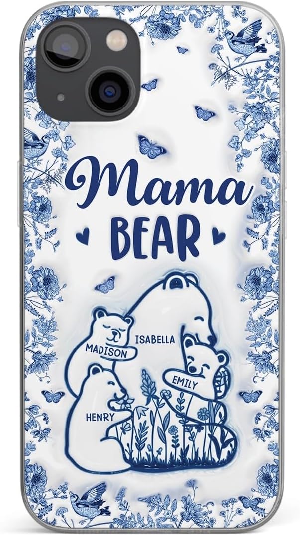 Custom 3D Inflated Effect Printed Clear Phone Case, Personalized Birthday Gifts for Mom, Grandma, Love You Beary Much, Great Grandma Gifts, Phone Cases for iPhone Samsung