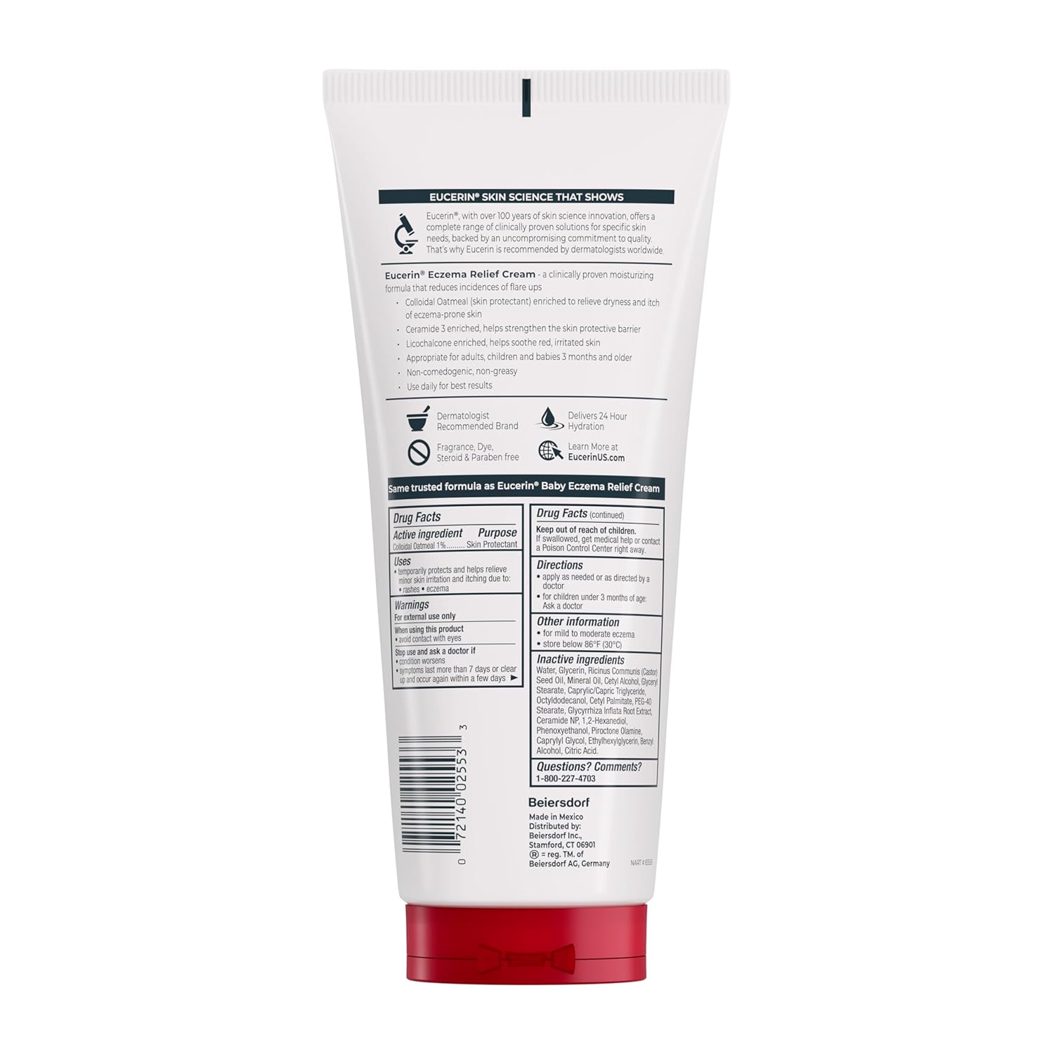 Includes one (1) 14 ounce tube of Eucerin Eczema Relief Body Cream with Colloidal Oatmeal