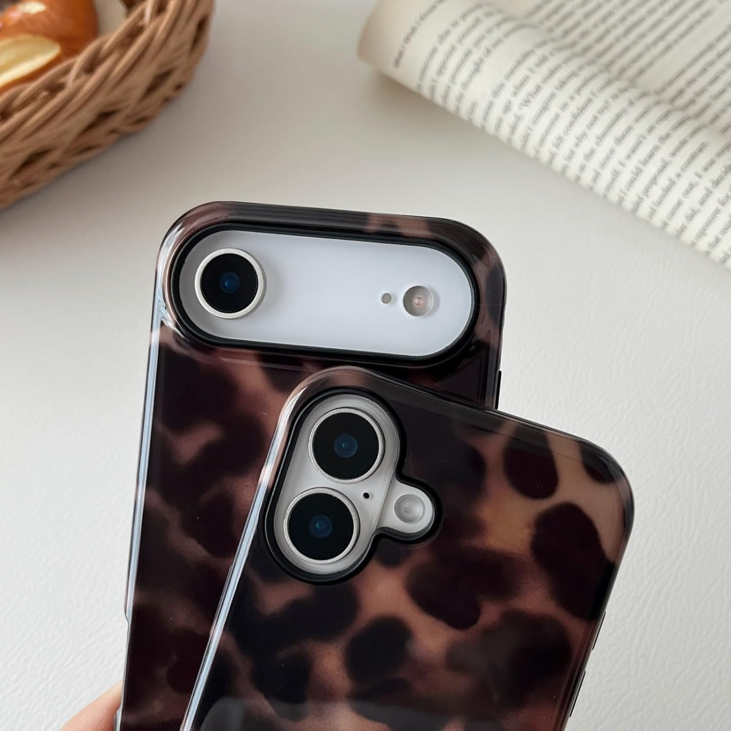 Longlayss Compatible with iPhone 17 Case Tortoise Shell Phone Case for Women Girl Shockproof TPU and Hard PC Protective Cover – Amber Brown Leopard