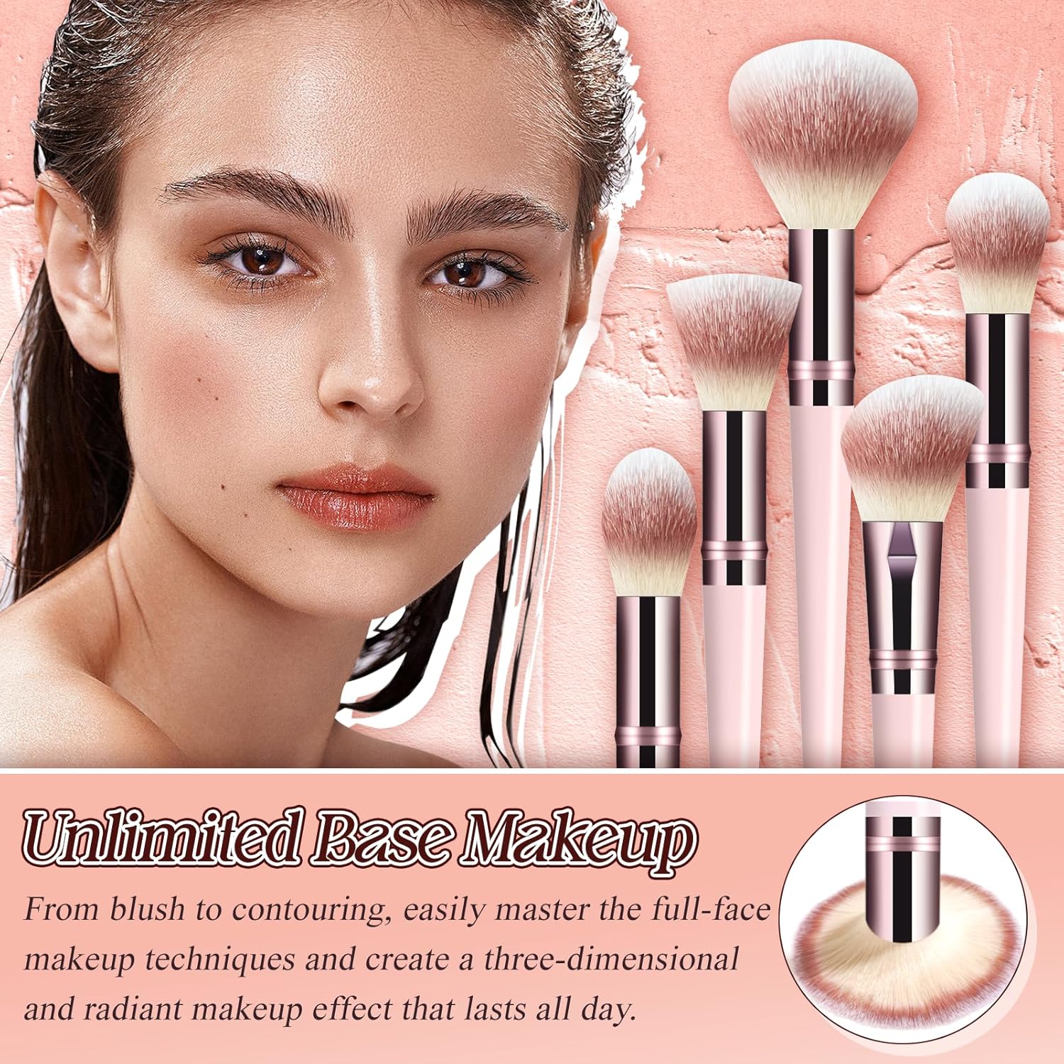 Soft bristles, skin-friendly: The bristles of our makeup brush set are made of high-quality synthetic fibers, which are not only soft, skin-friendly and odorless, but also dense and not prone to shedding. They have excellent powder grasping ability and apply makeup evenly. The handle is made of sturdy and durable materials, fitting the arc of the palm, providing a stable and effortless grip. From the material to the grip, it can bring you a comfortable experience, making makeup a pleasure.