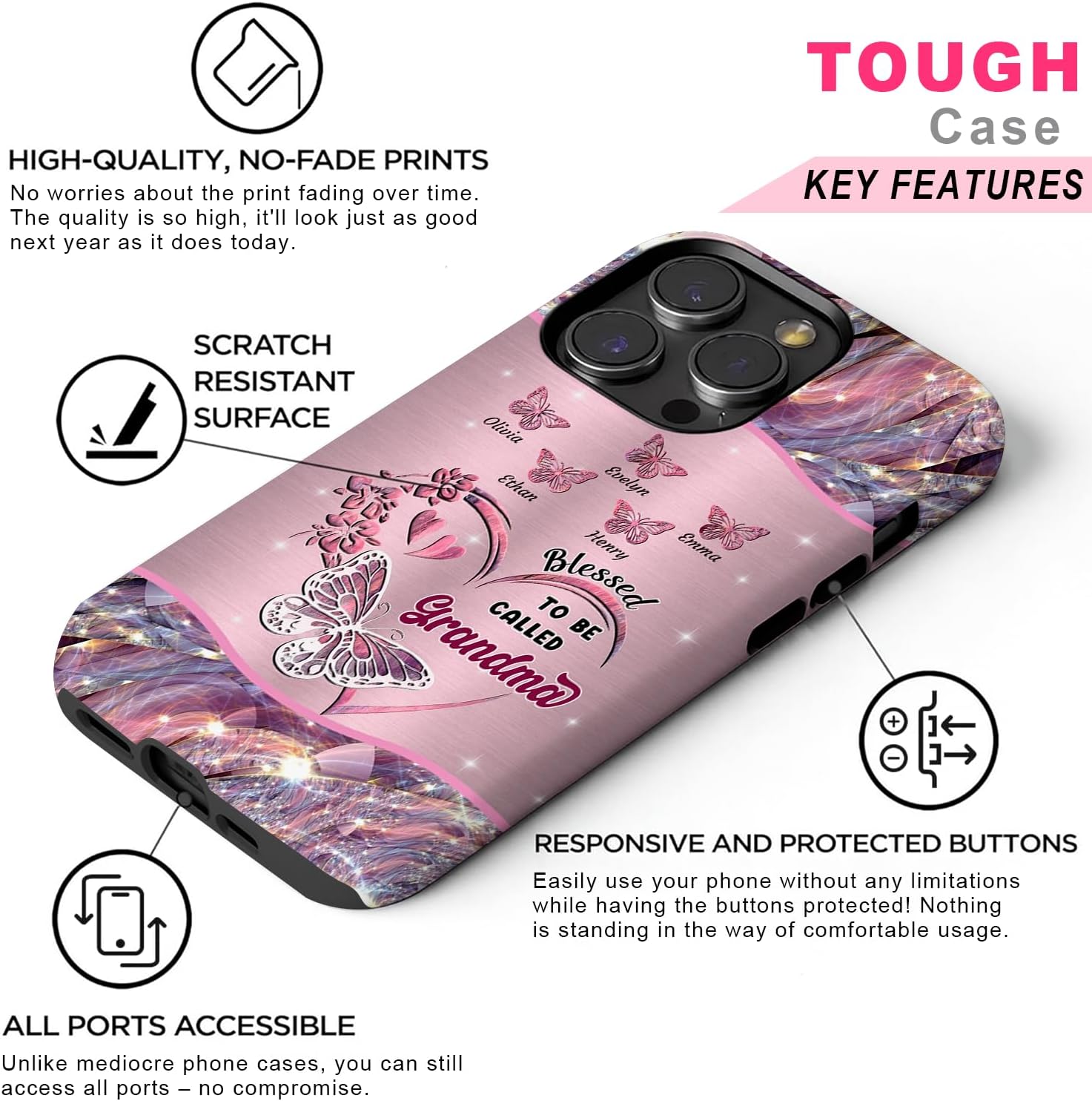 🌸 A GARDEN OF LOVE, MADE JUST FOR GRANDMA – Celebrate the beautiful bond between Grandma and her family with a personalized floral phone case. Each flower represents a loved one’s name, creating a meaningful “Grandma’s Garden” she can carry everywhere.