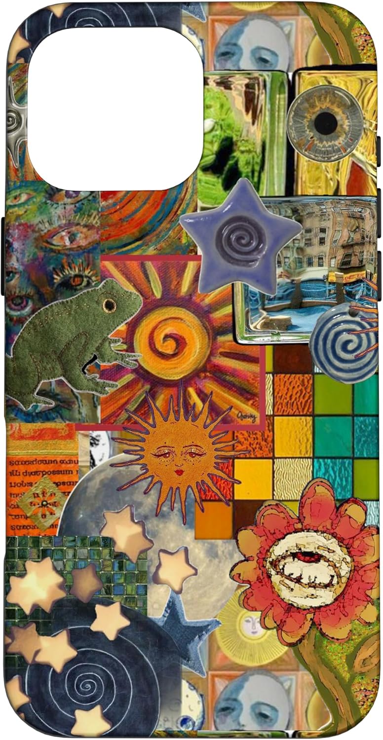 Retro Whimsical Artistic Collage Funky Abstract Stars Case for iPhone 16 Pro Max