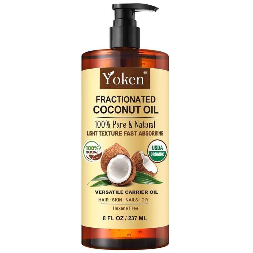 USDA Organic Quality: Yoken USDA Organic Fractionated Coconut Oil is made from organically grown coconuts. The pure coconut oil stays liquid, odorless, and colorless, absorbing easily to leave skin feeling soft and comfortable without greasiness