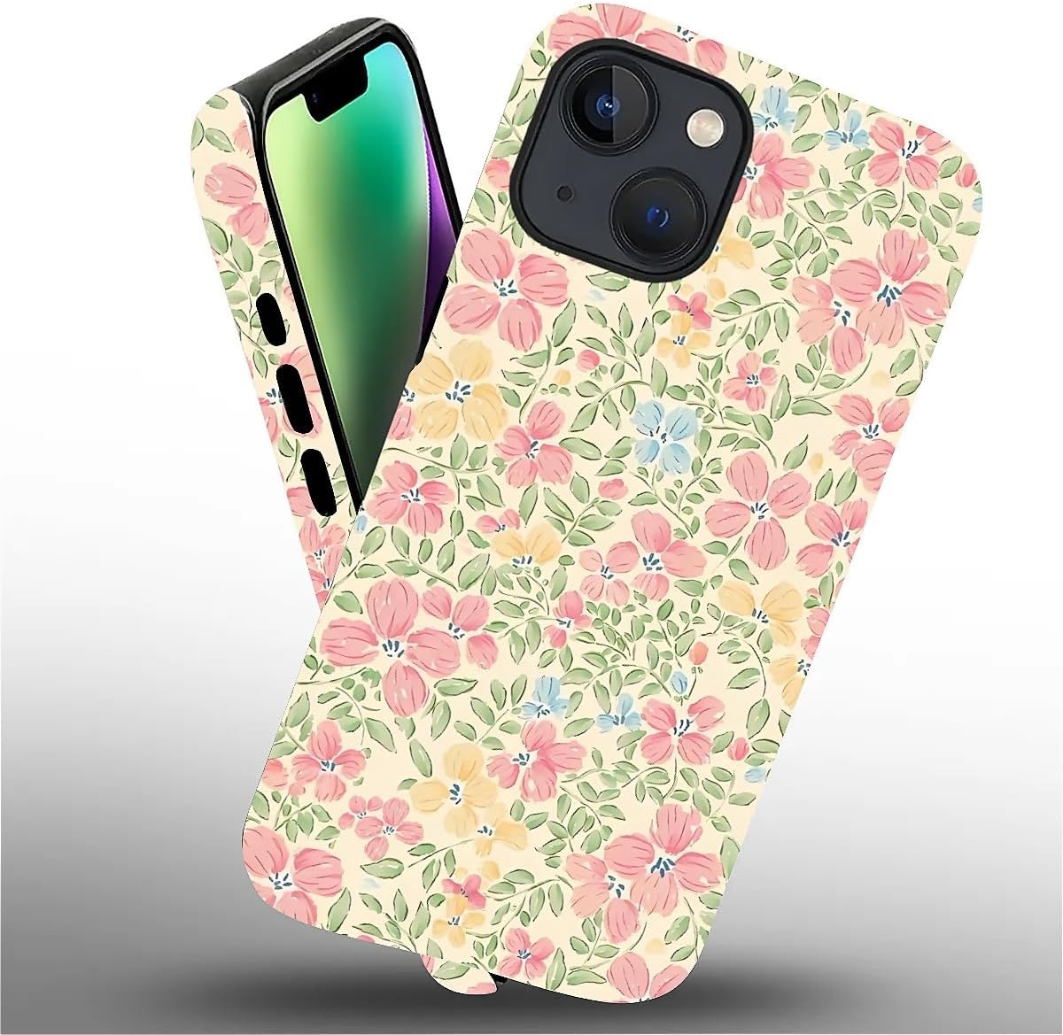 Case for iPhone 13/14,Fresh Flowers Exquisitely Pattern Double Protective Phone Cover Cases Soft Silicone for iPhone 13/14