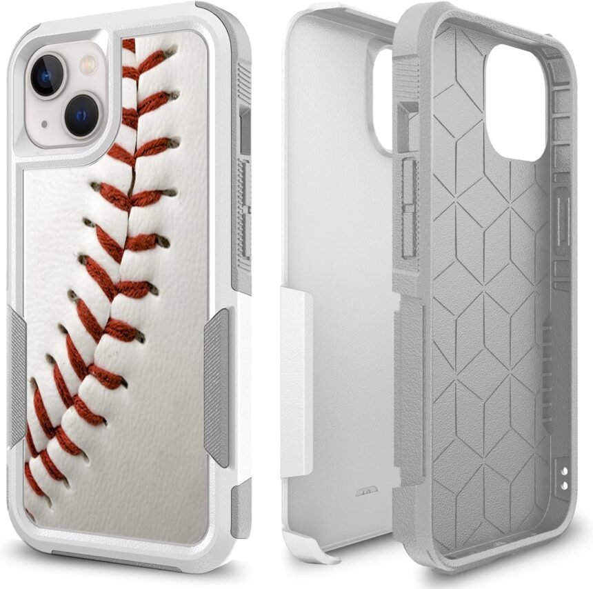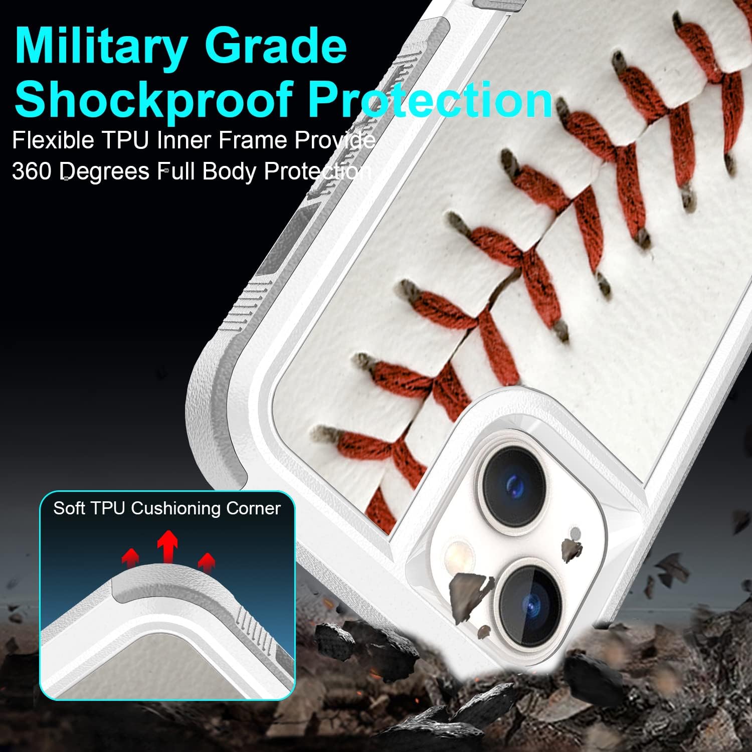 Case for iPhone 13, Baseball Sports Pattern Shock-Absorption Hard PC and Inner Silicone Hybrid Dual Layer Armor Defender Case for iPhone 13 (6.1 inch)