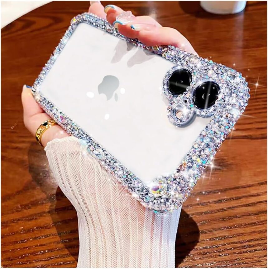 CUTE AND CHIC DESIGN: Sparkling rhinestones surround the back of the case and around the camera. Unique and cute design style makes your phone unique and makes your iPhone more stylish and luxurious.