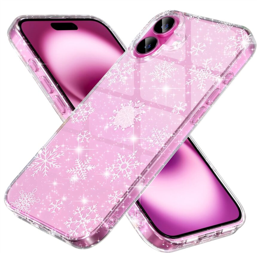 Choiche Compatible for iPhone 16 Case, Cute Glitter Sparkly Bling Christmas Phone Case, Military-Grade Drop Protection Shockproof Cover for Women Girls (Glitter Snowflake)